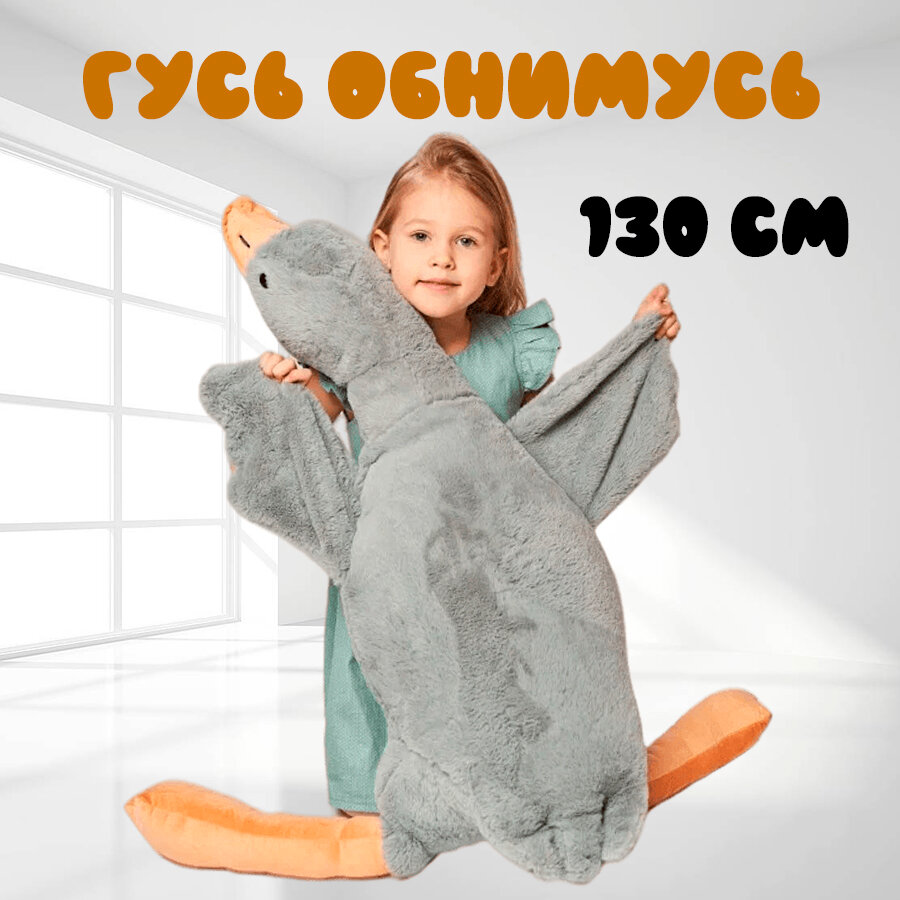 Мягкая игрушка-подушка "Гусь обнимусь", серый, 130 см интересное: