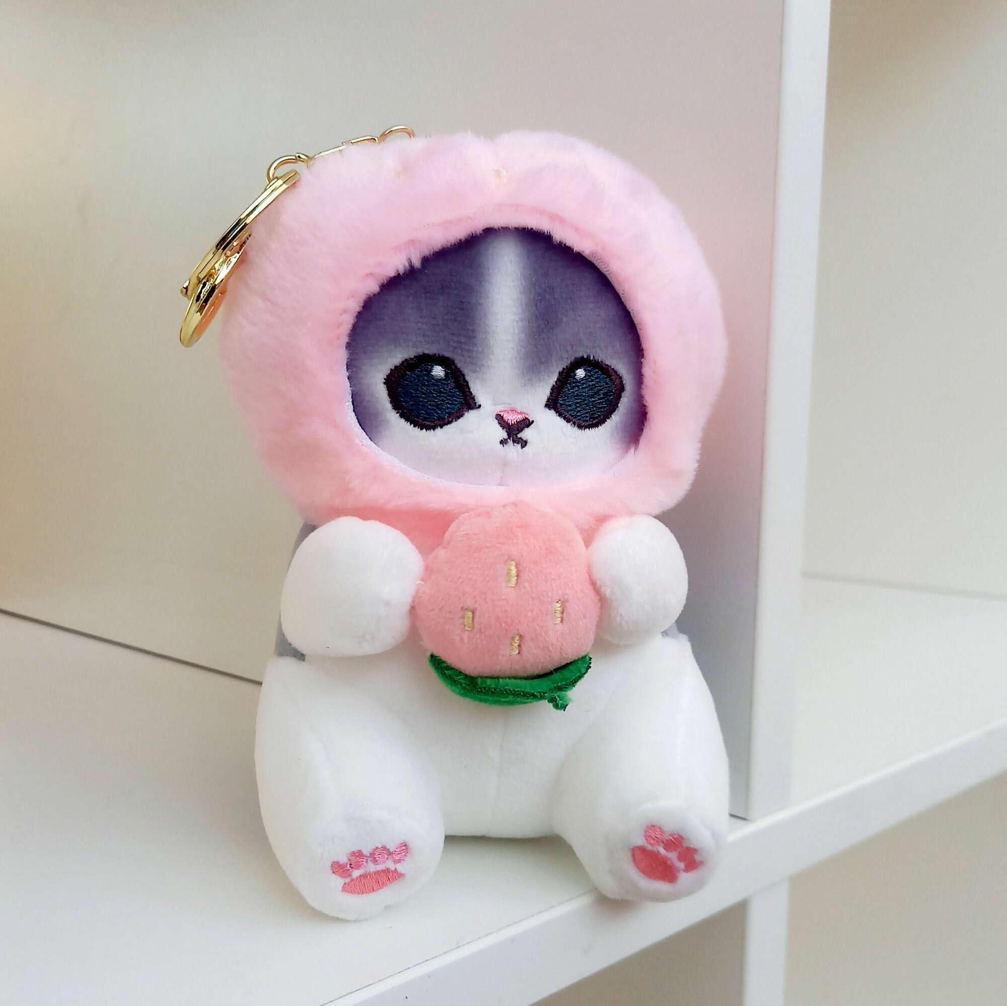 Купить Брелок Кот-клубничка игрушка мягкая на рюкзак Mofusandcat