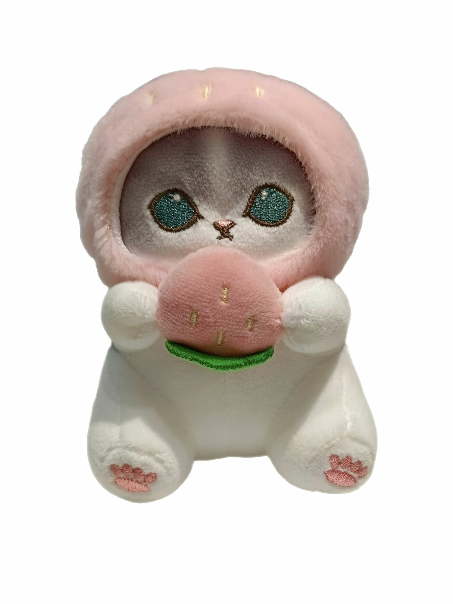 Брелок Кот-клубничка игрушка мягкая на рюкзак 12см.