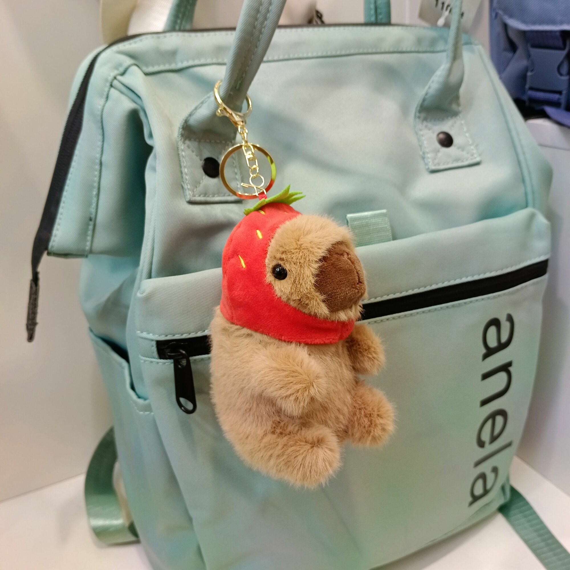 СохранитьБрелок Капибара-клубничка игрушка мягкая на рюкзак интересное: