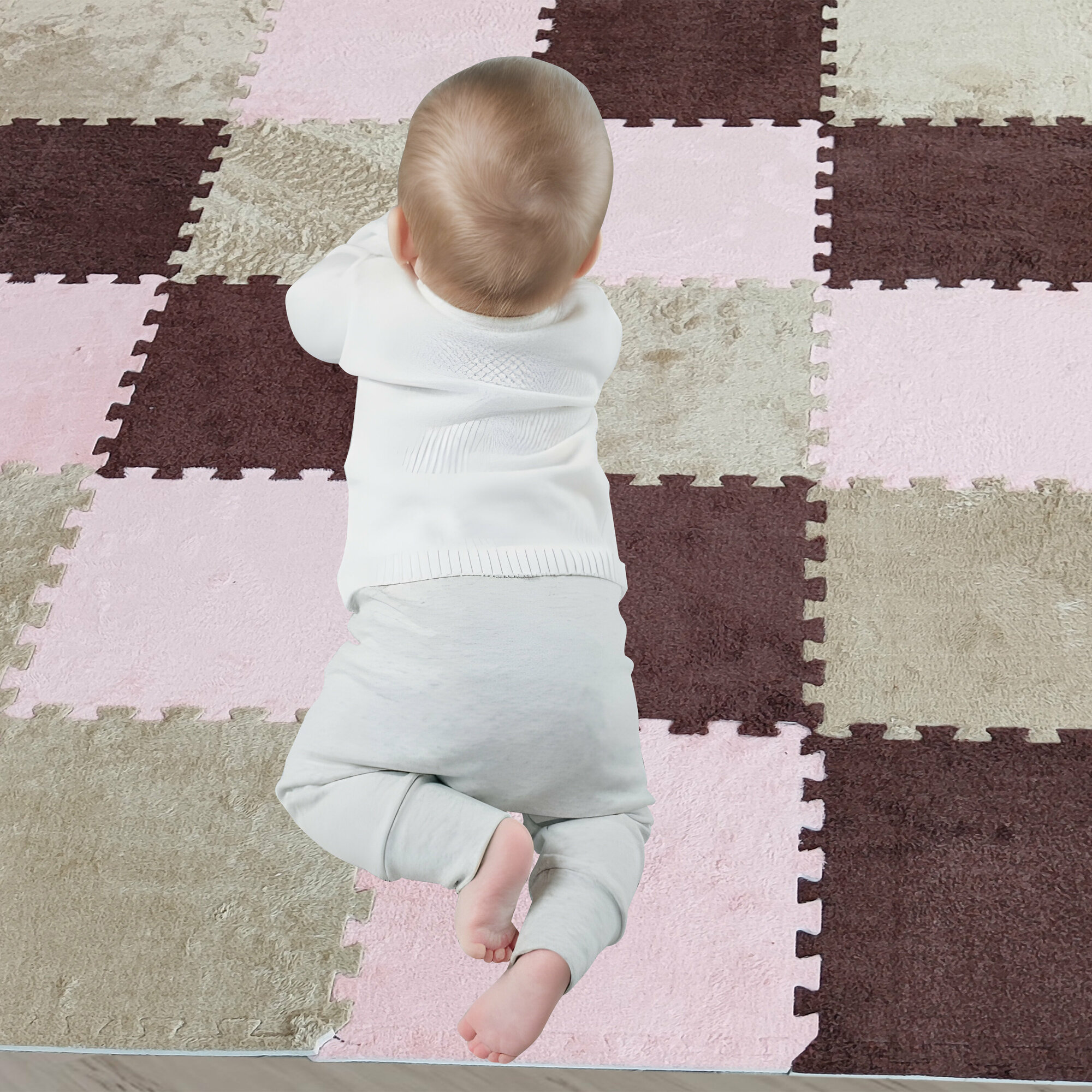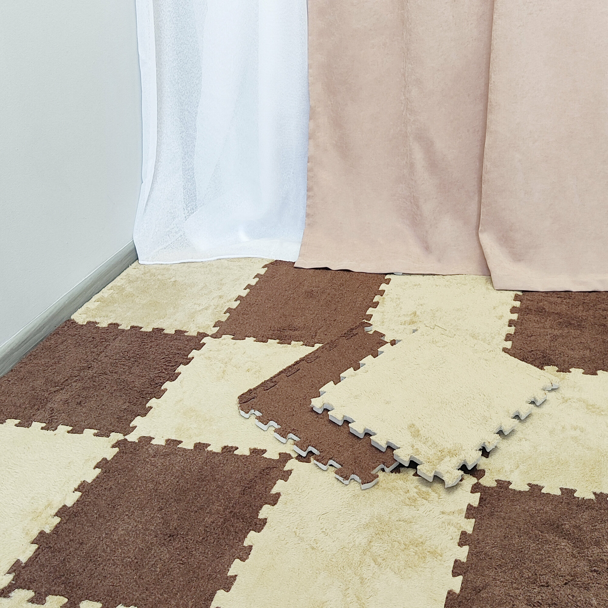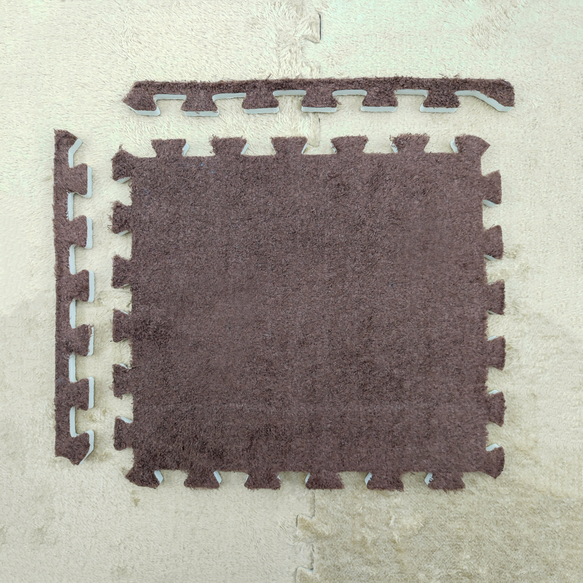 Купить Коврик-пазл Baizheng махровый, упаковка 10 штук, размер 30х30х1,5см, цвет коричневый