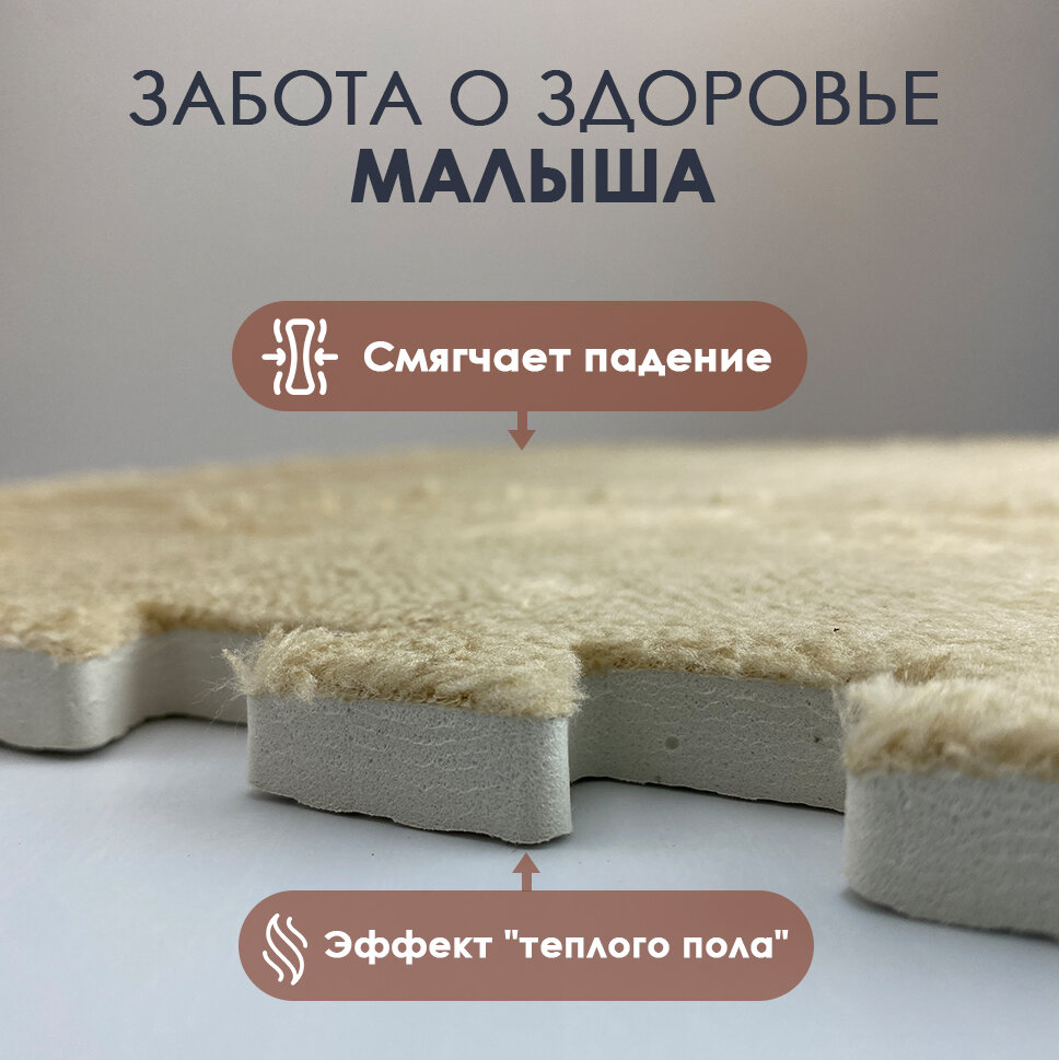 Коврик-пазл Baizheng махровый, упаковка 10 штук, размер 30х30х1,5см, цвет бежевый