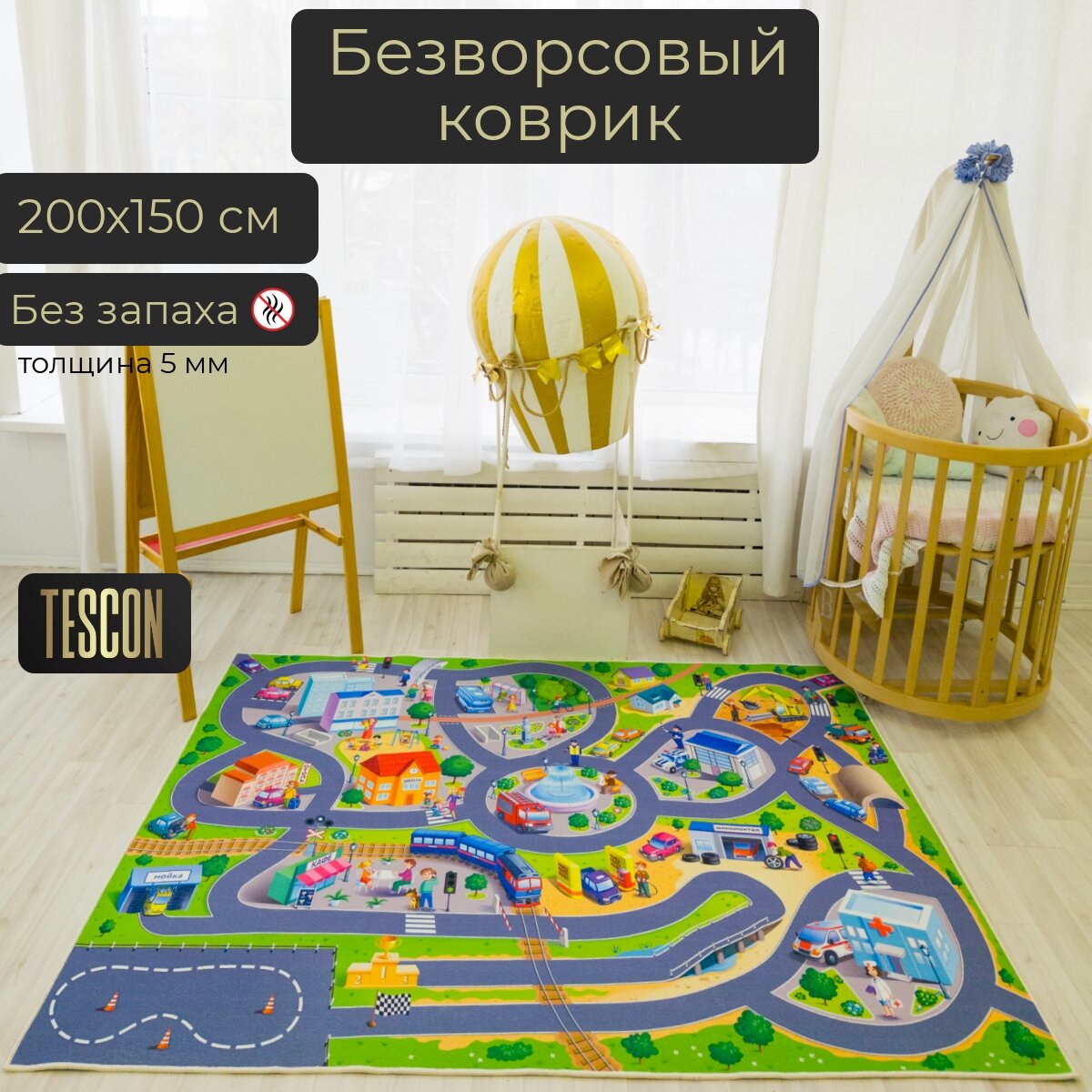 Детский безворсовый коврик TESCON "Дорога-Фонтан" 150х200 см интересное: