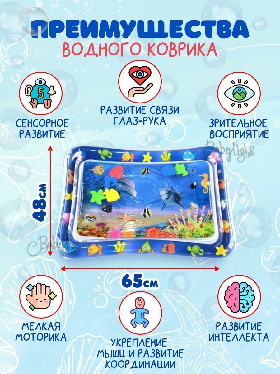 Акваковрик, детский развивающий водный коврик Осьминожка, игровой надувной, Морские чудеса