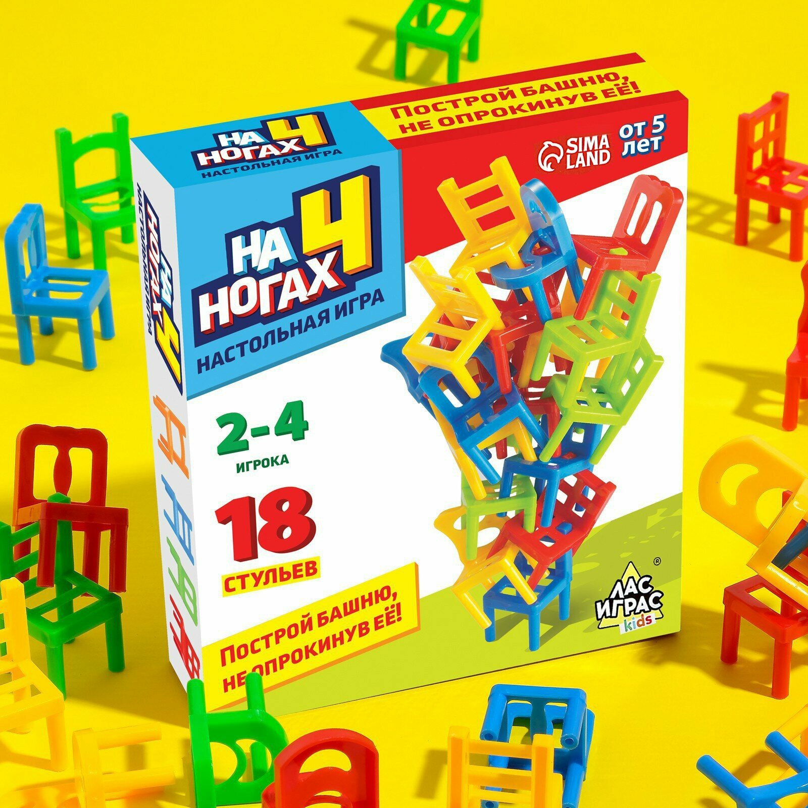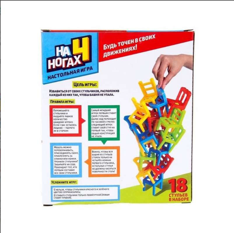 Настольная игра "На 4 ногах", 18 стульев, 8 цветов, построй башню, для детей и малышей интересное: