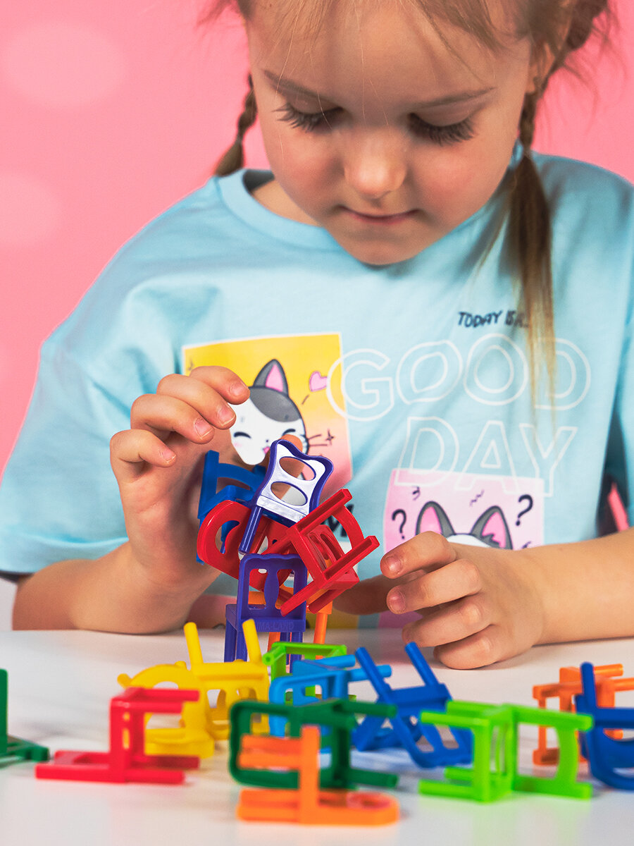 Купить Настольная игра "На 4 ногах", 18 стульев, 8 цветов, построй башню, для детей и малышей