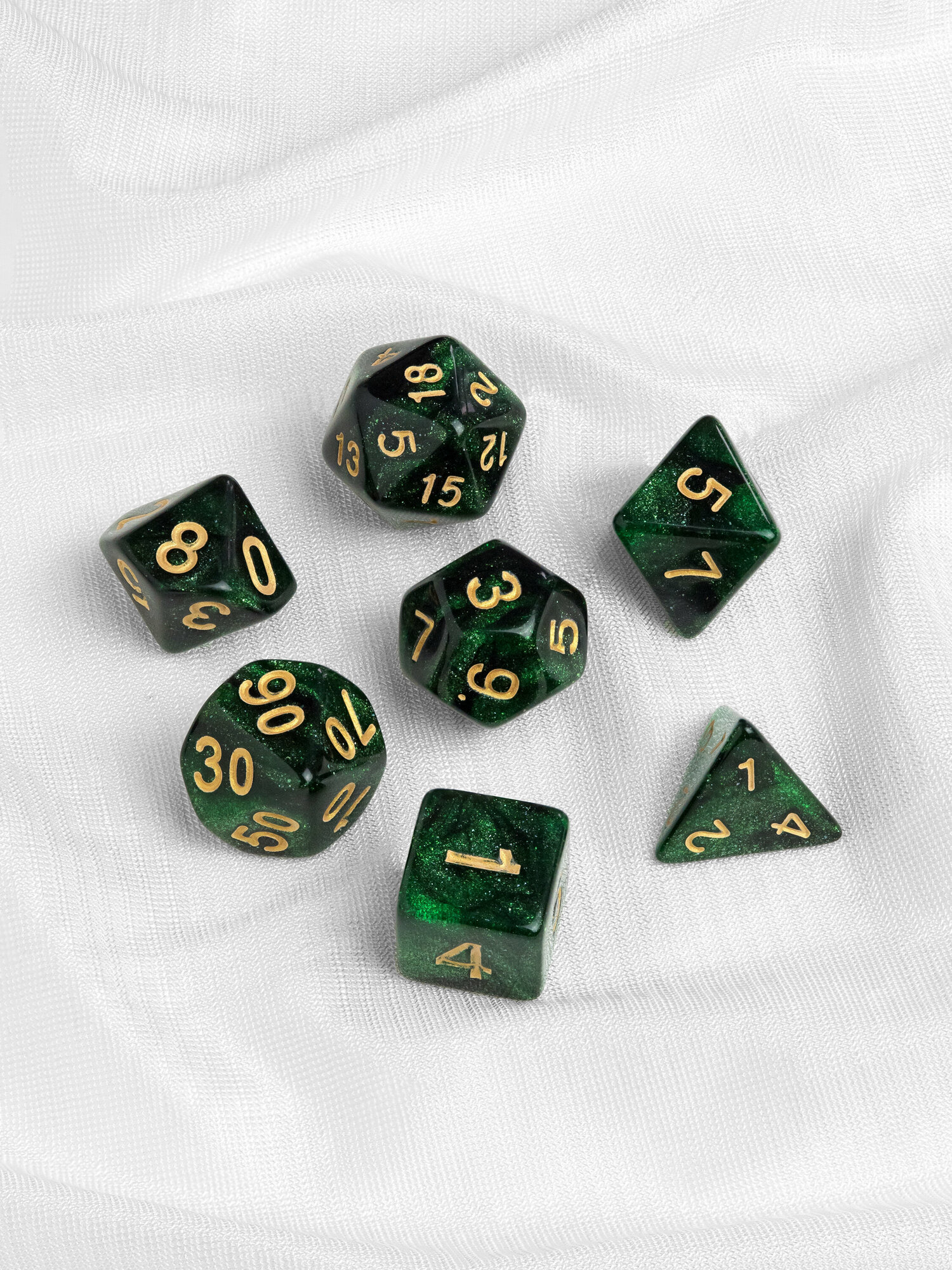 Купить Кости игральные, дайсы, кубики для DnD (ДнД) 7 шт. Темно-зеленый