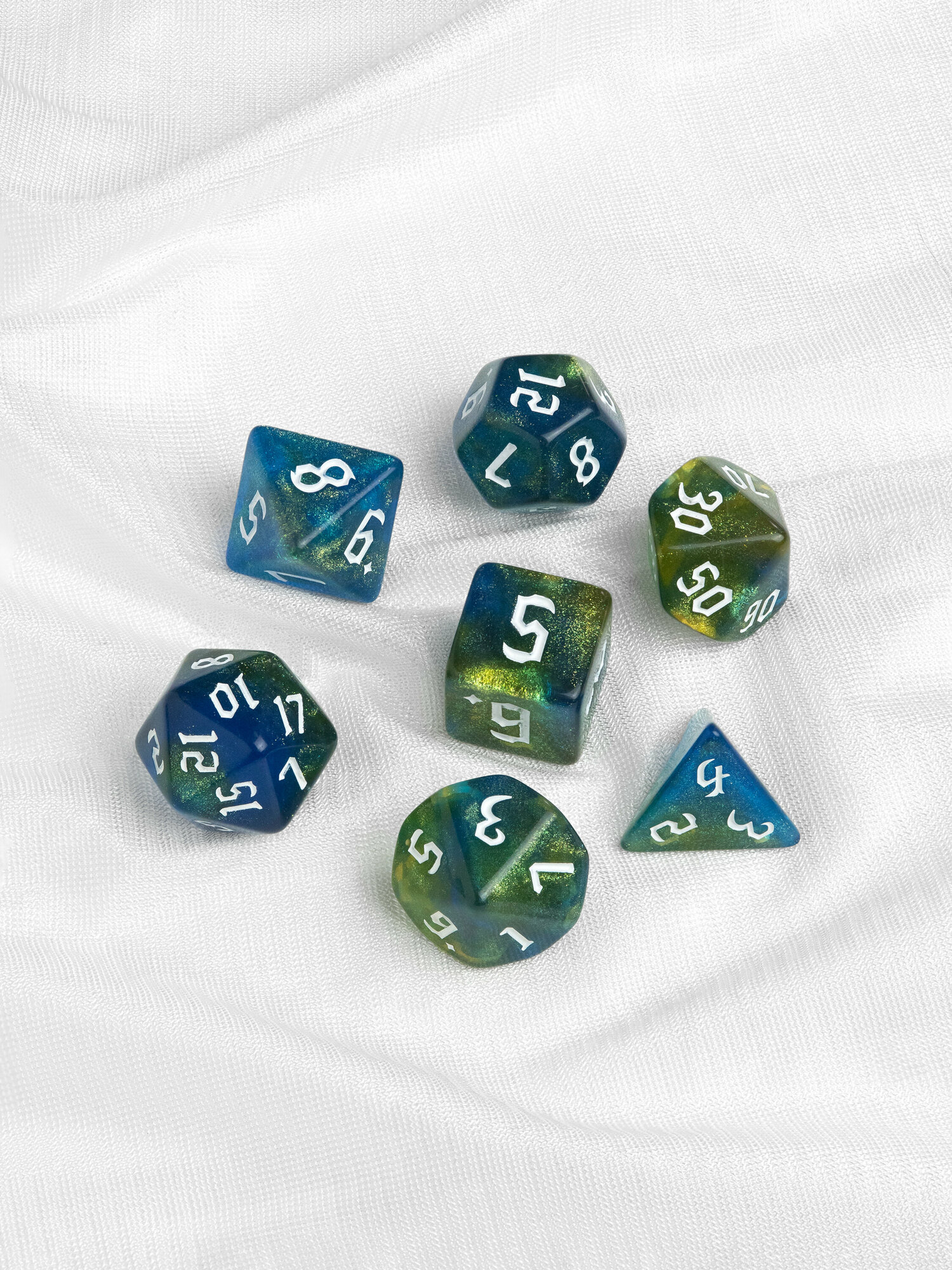 Купить Кости игральные, дайсы, кубики для DnD (ДнД) 7 шт, Сине-зелёный