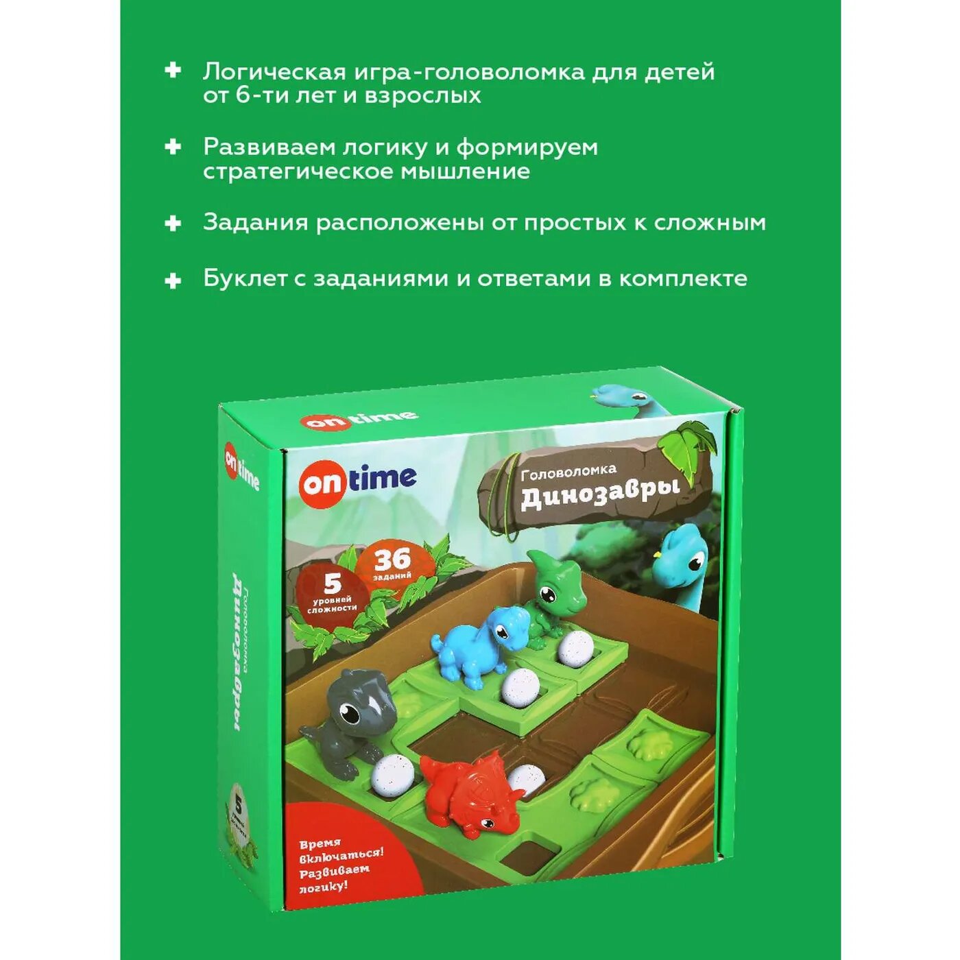 Игра настольная ON TIME "Динозавры", логическая, от 6 лет, на одного игрока