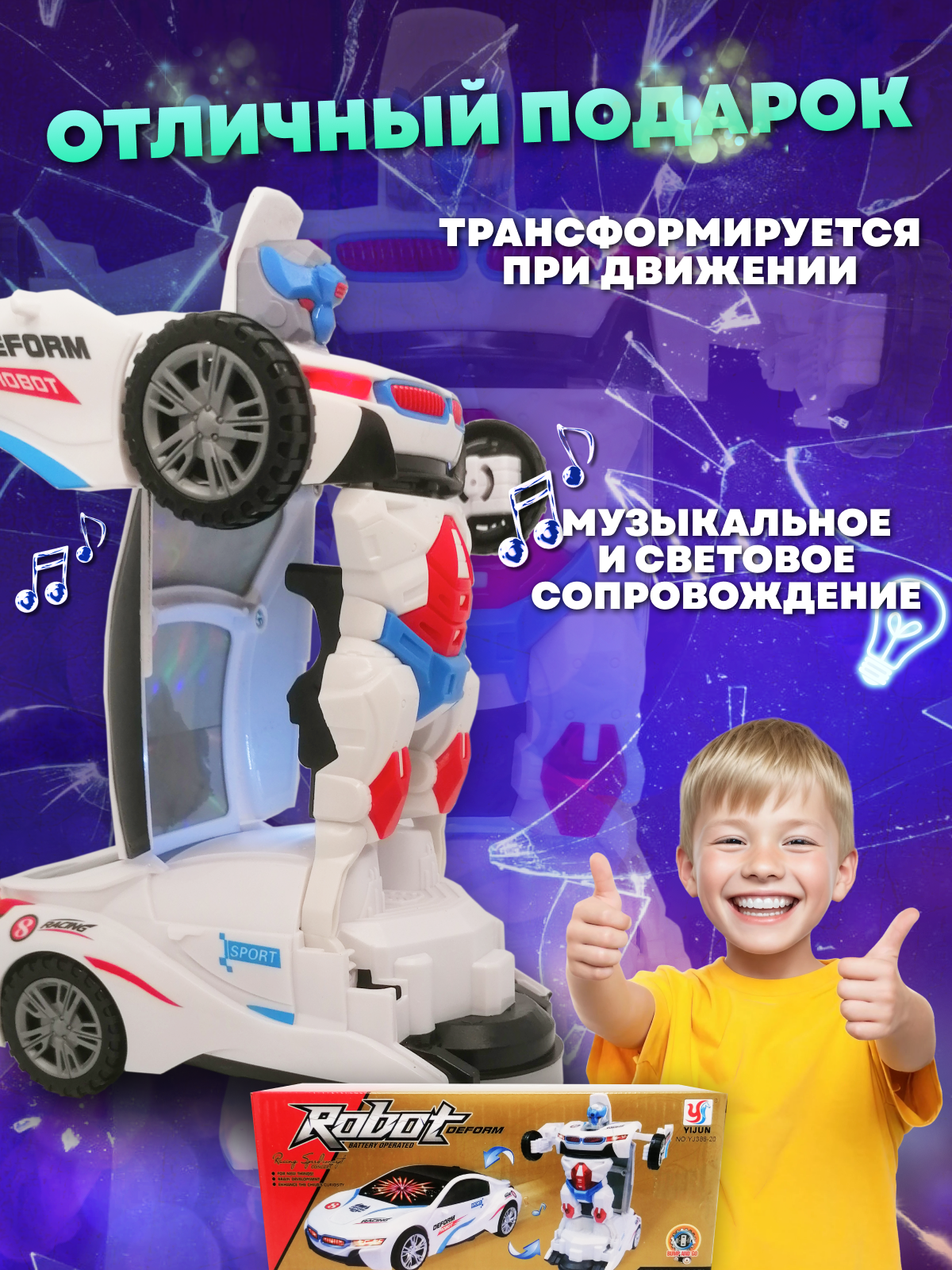 Купить Машина трансформер музыкальная с 3D-светом Robot Deform