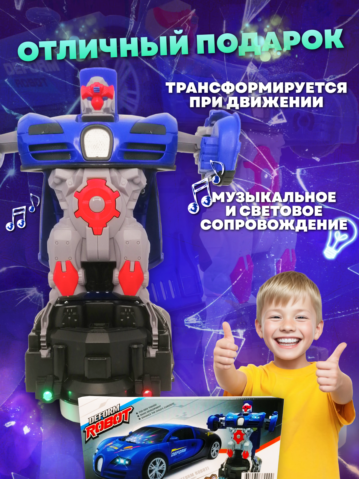 Купить Машина трансформер музыкальная с 3D-светом Бугатти Синий