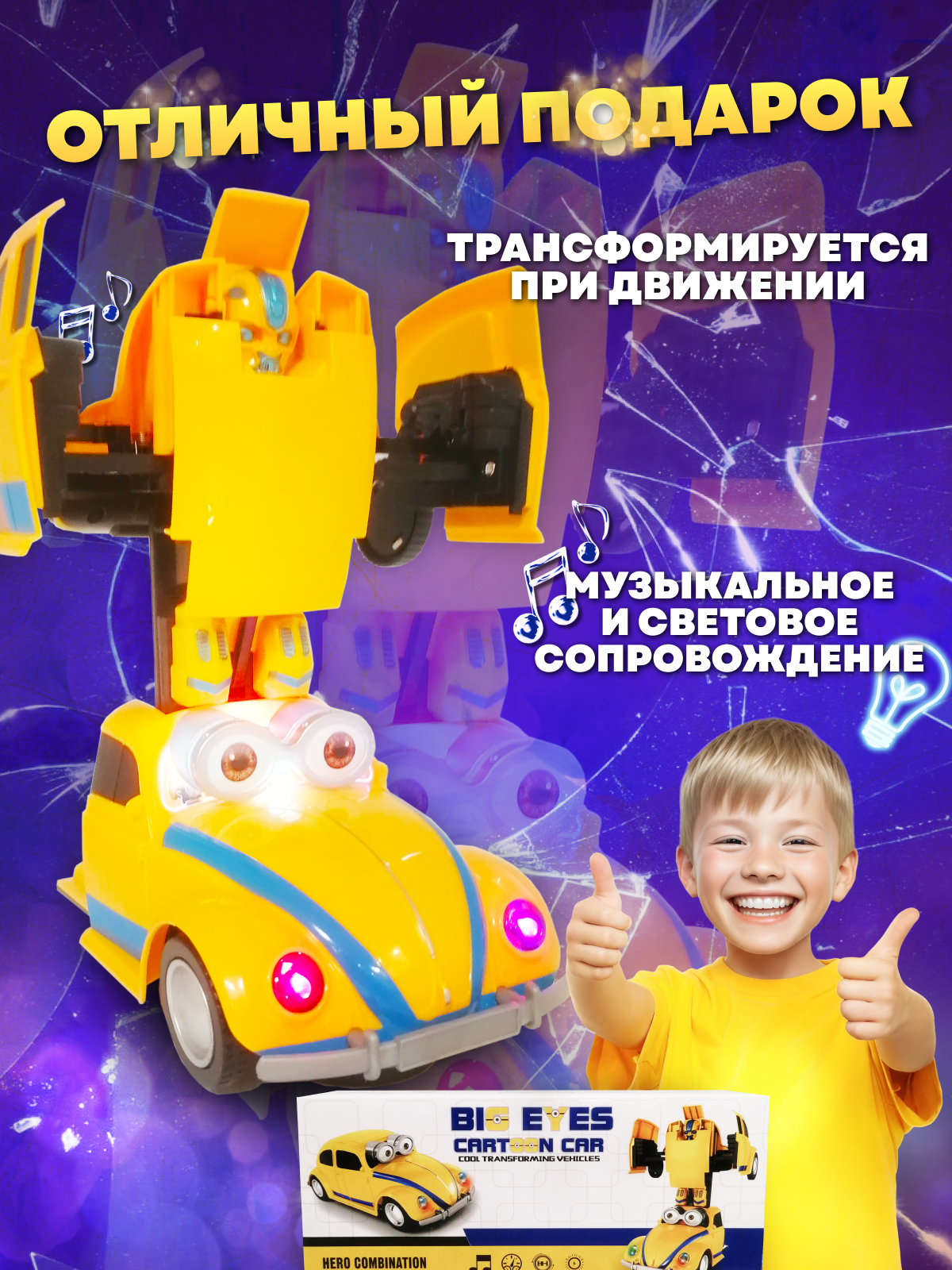 Купить Музыкальная машинка робот трансформер Жук Миньон 2 в 1 на батарейках С 3D светом "Big Eyes"