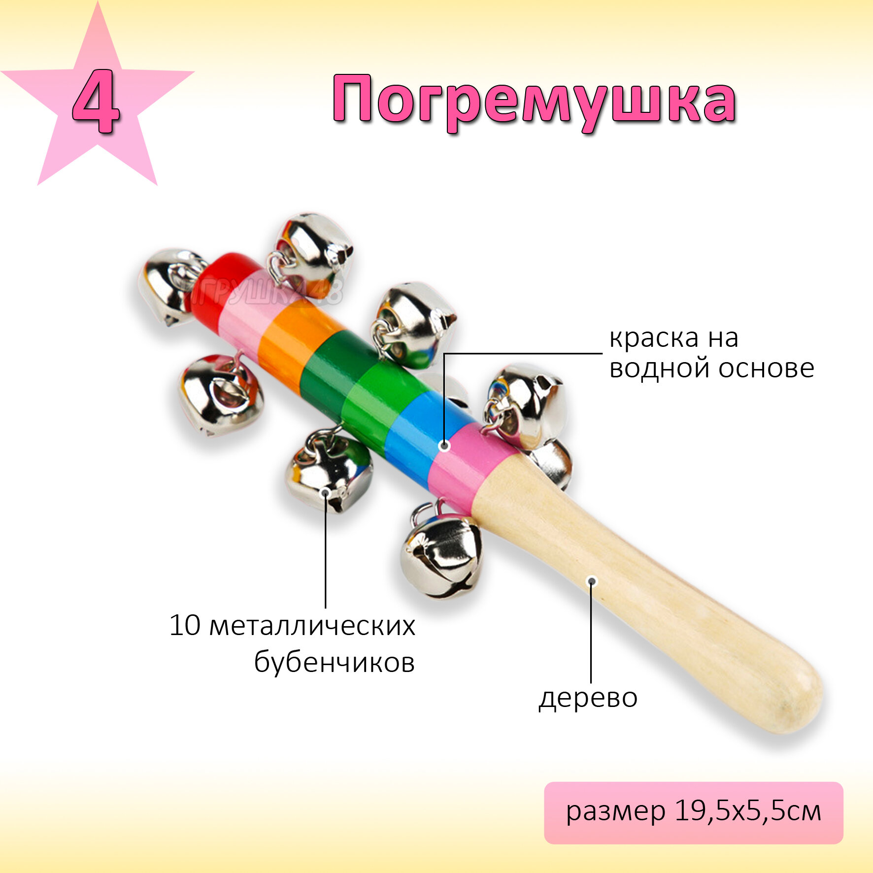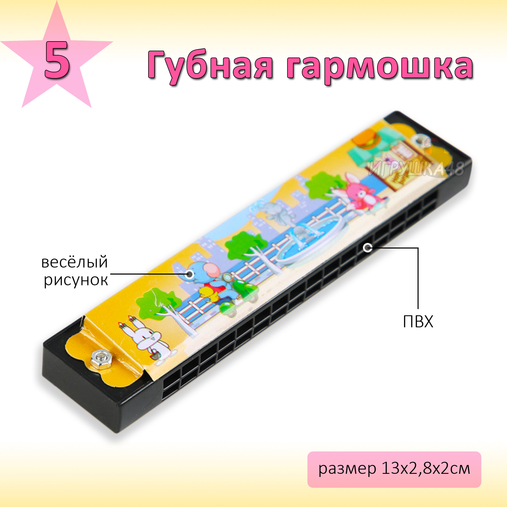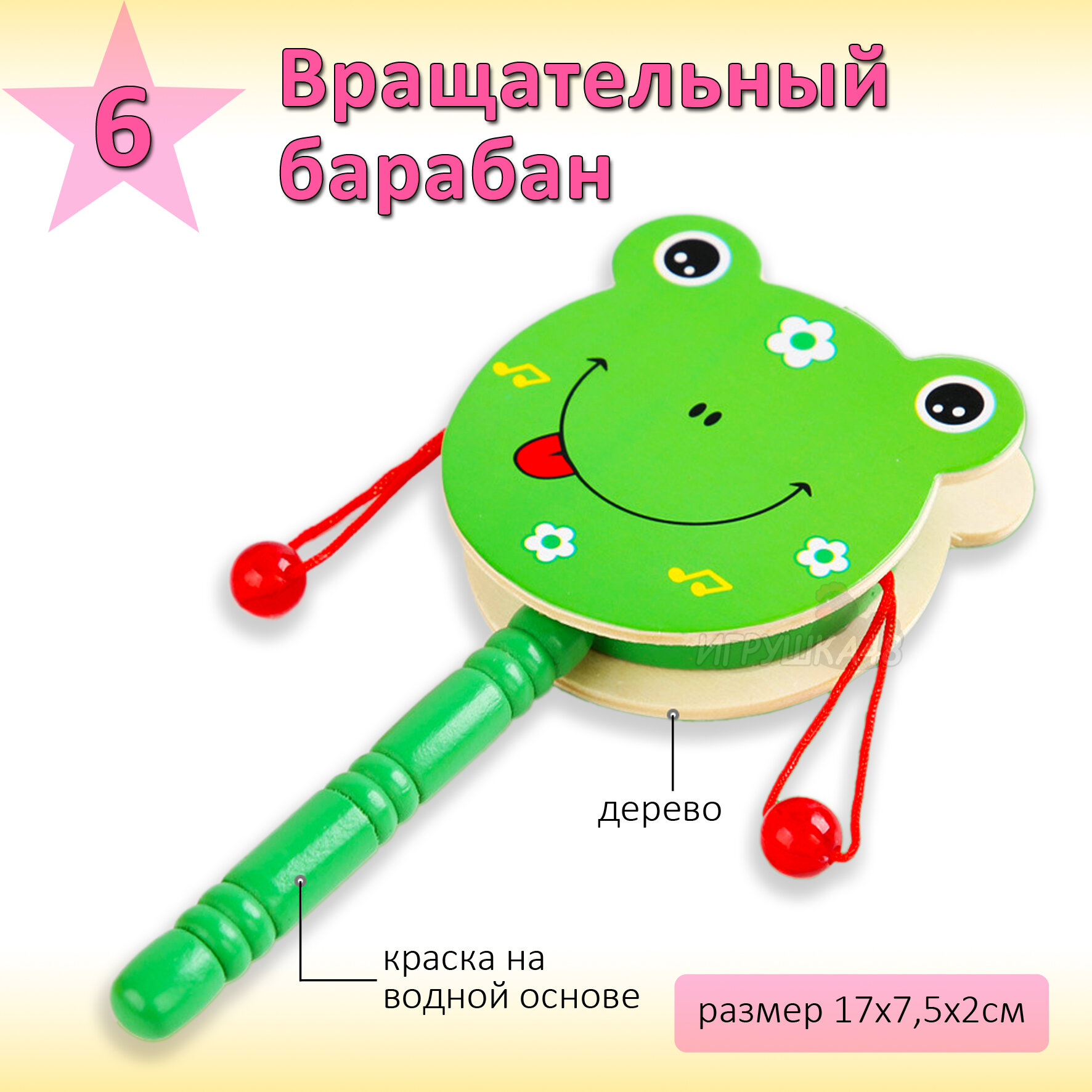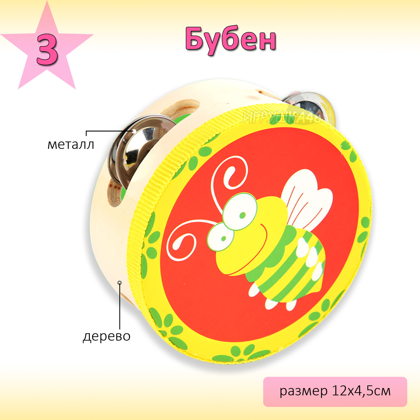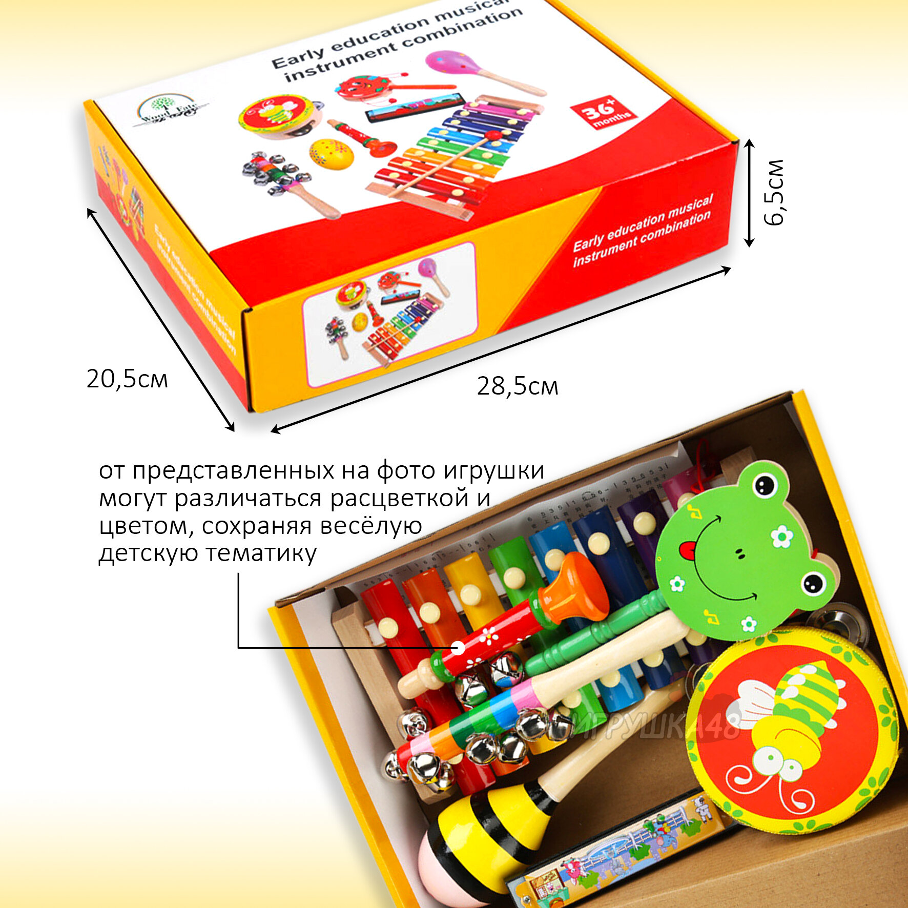 | В комплекте | бубен / губная гармошка / дудочка / маракас / металлофон |