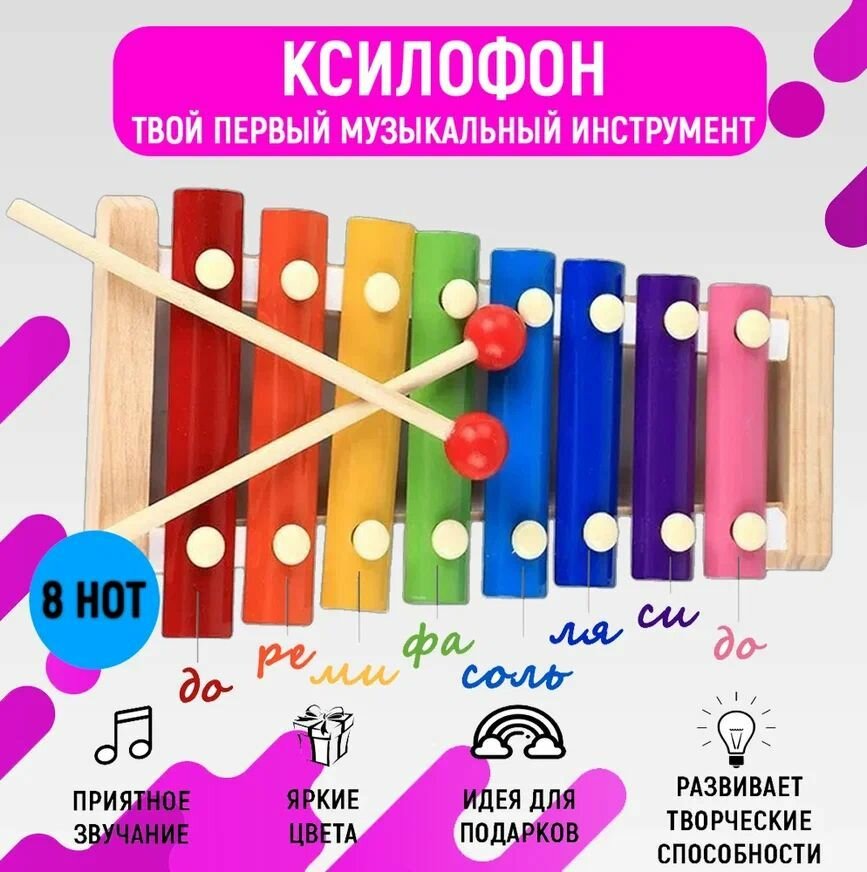 | Дополнительная информация | Деревянный игрушечный инструмент ксилофон с двумя палочками для игры |