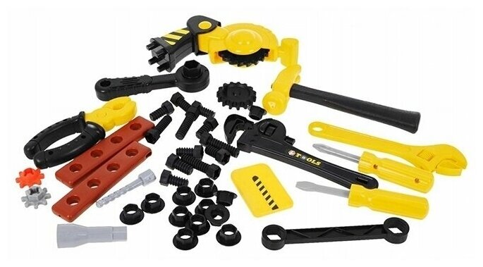 | Комплектация | отвертки, пила, ключи гаечные, шурупчики, верстак, молоток, гайка, плашка |