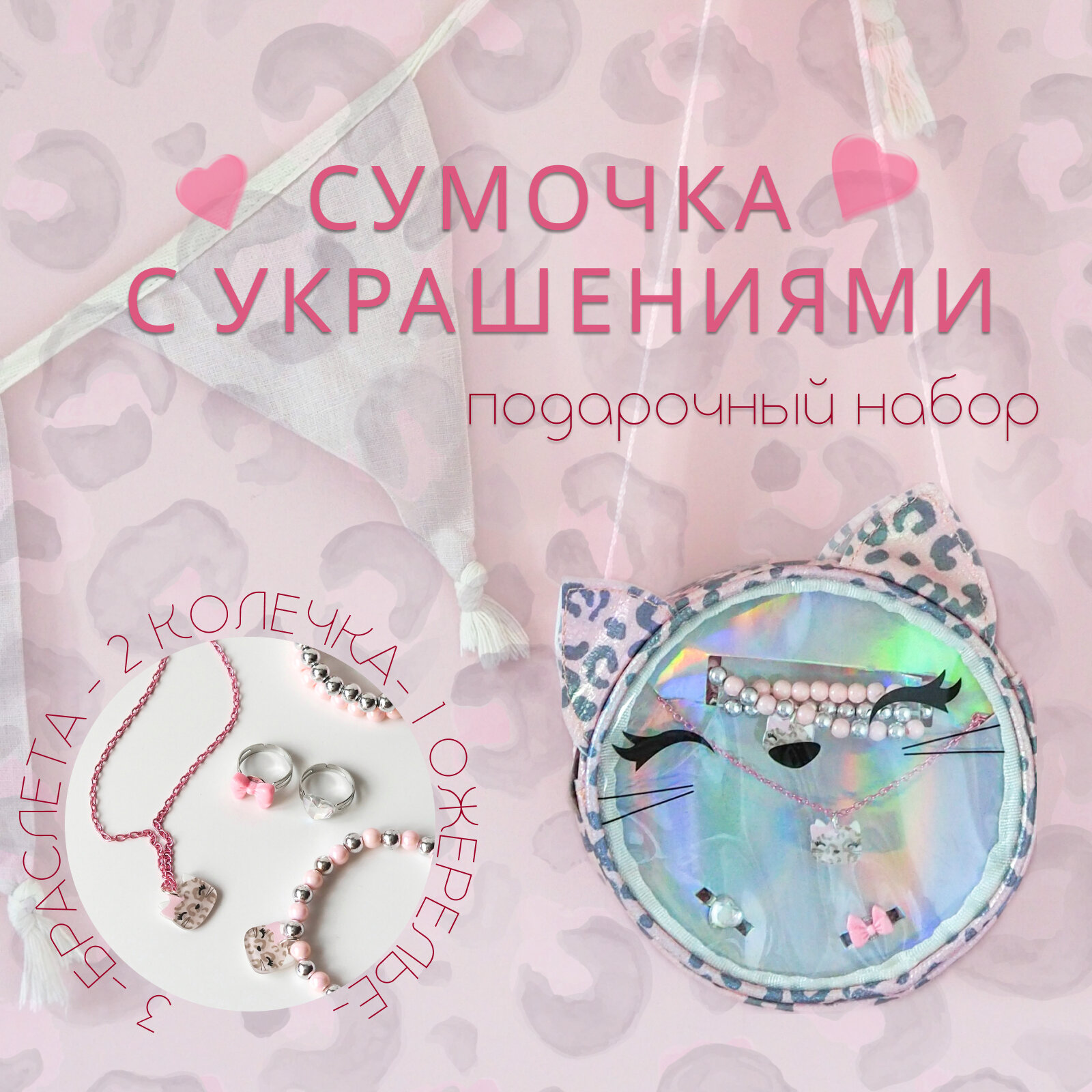 Купить Леопардовая сумочка для девочек с бижутерией и украшениями, подарок девочке, подарочный набор