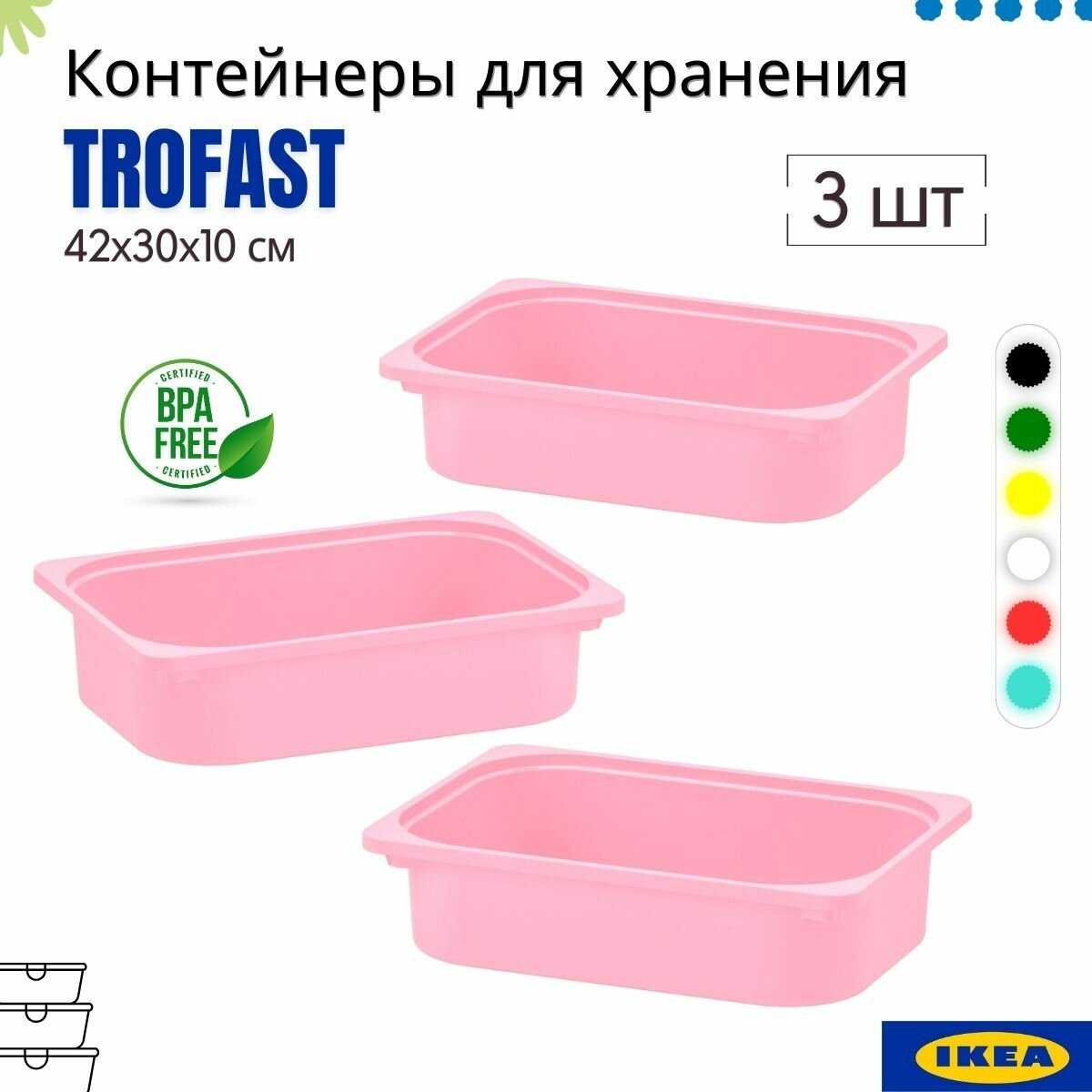 Купить Контейнеры для хранения икеа Труфаст, 42x30x10 см, розовый, набор 3 шт. Контейнер для игрушек
