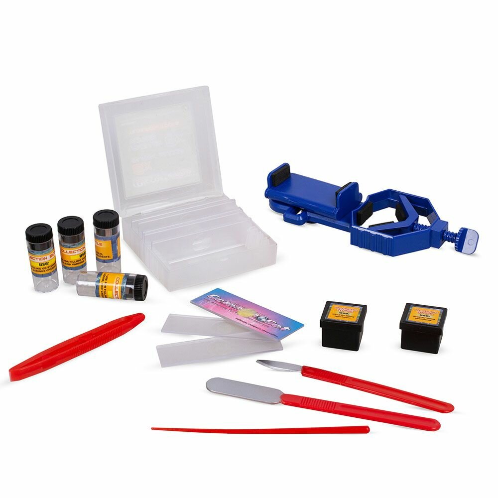 | Комплектация | микроскоп; Колбы 4 шт; коробочки 2 шт с наклейками; набор инструментов; предметные стекла 8 шт |