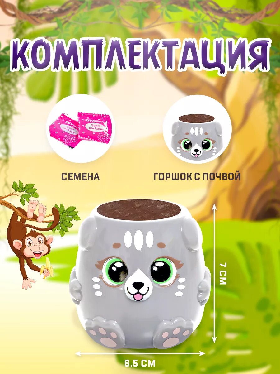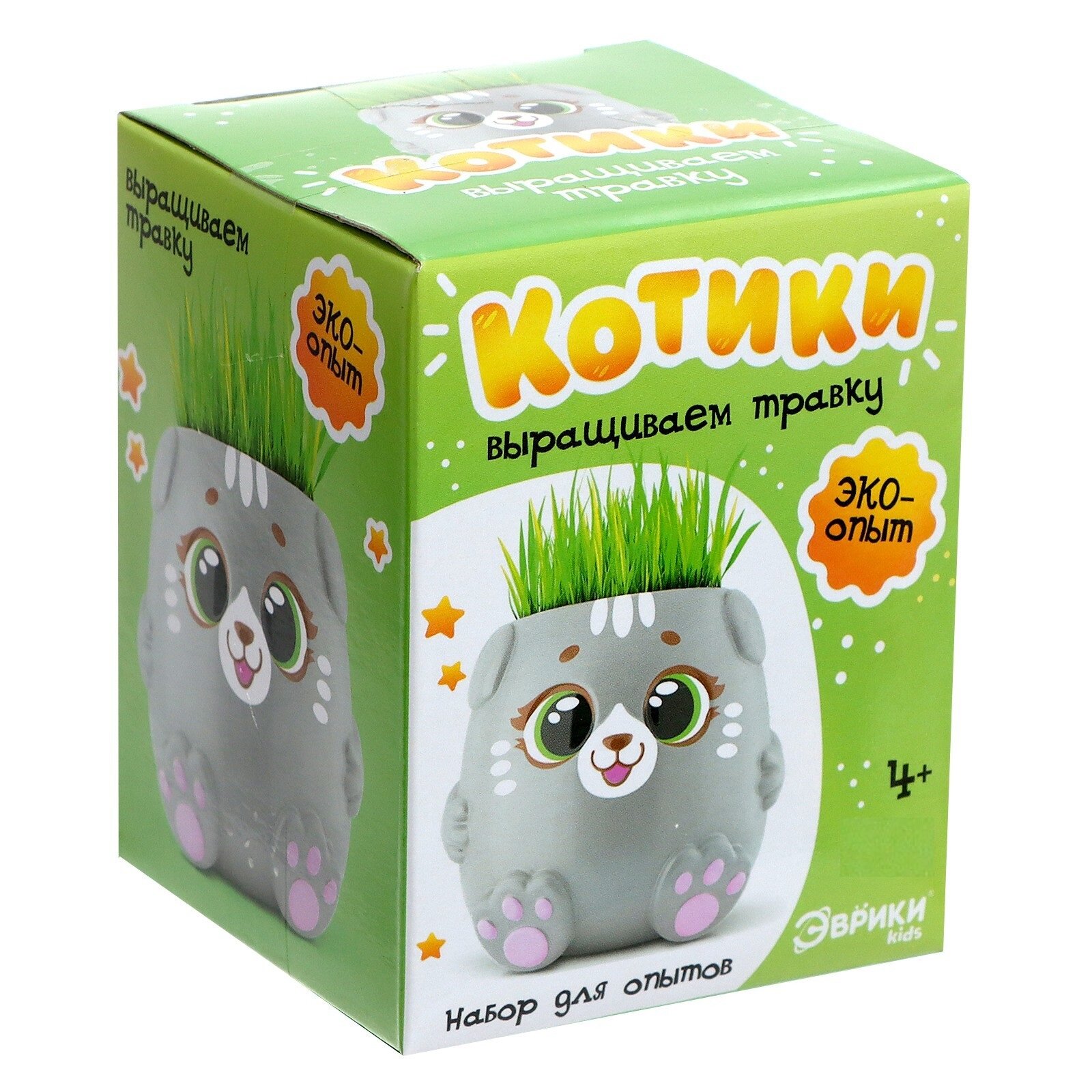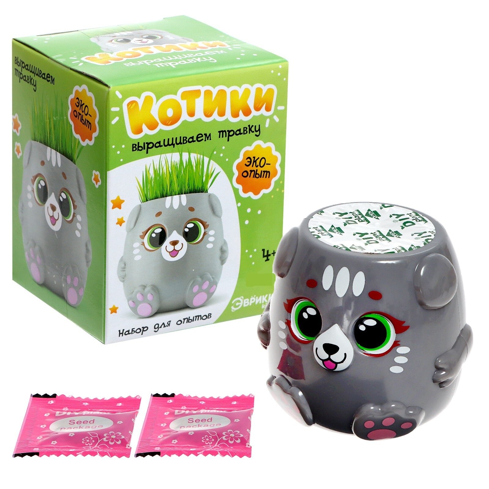 Купить Набор для опытов "Котики. Выращиваем травку", серый горшочек