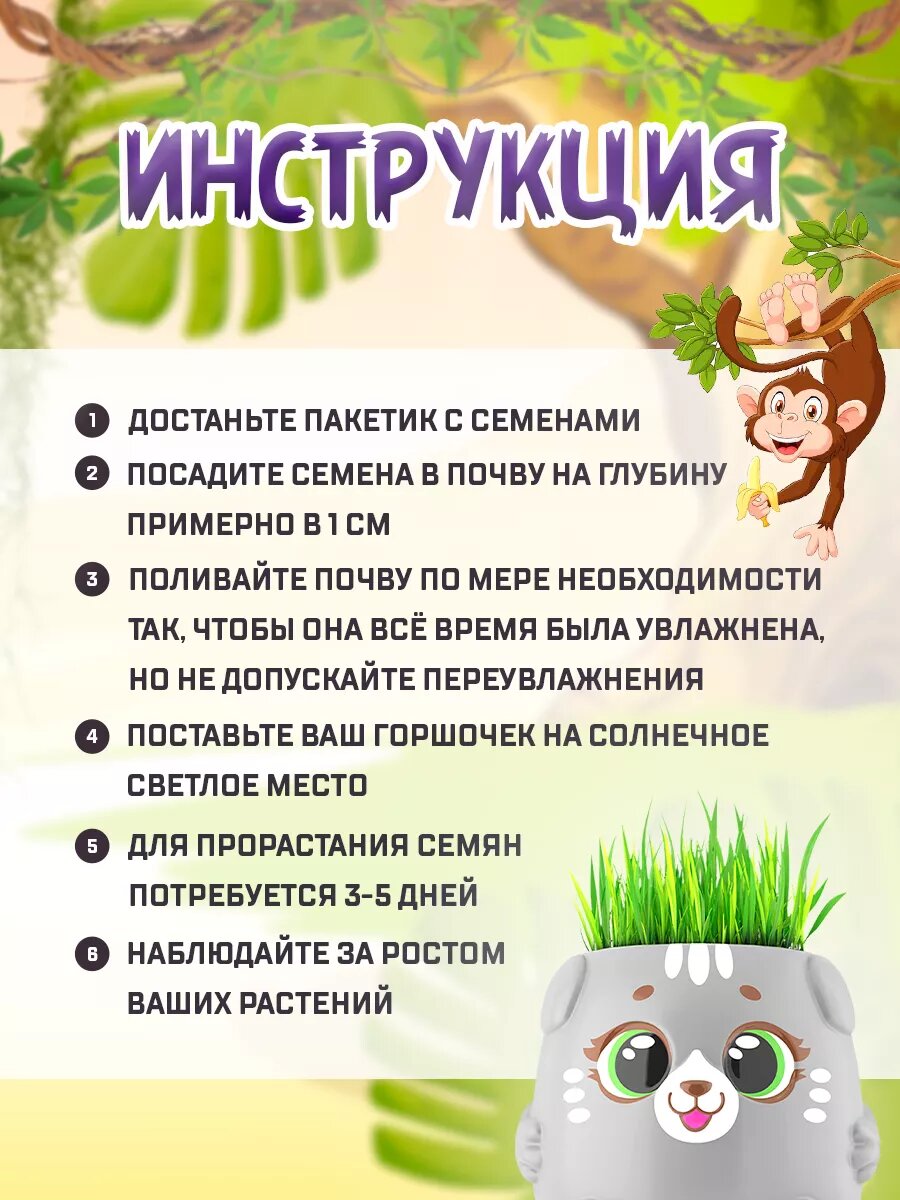 Набор для опытов "Котики. Выращиваем травку", серый горшочек интересное: