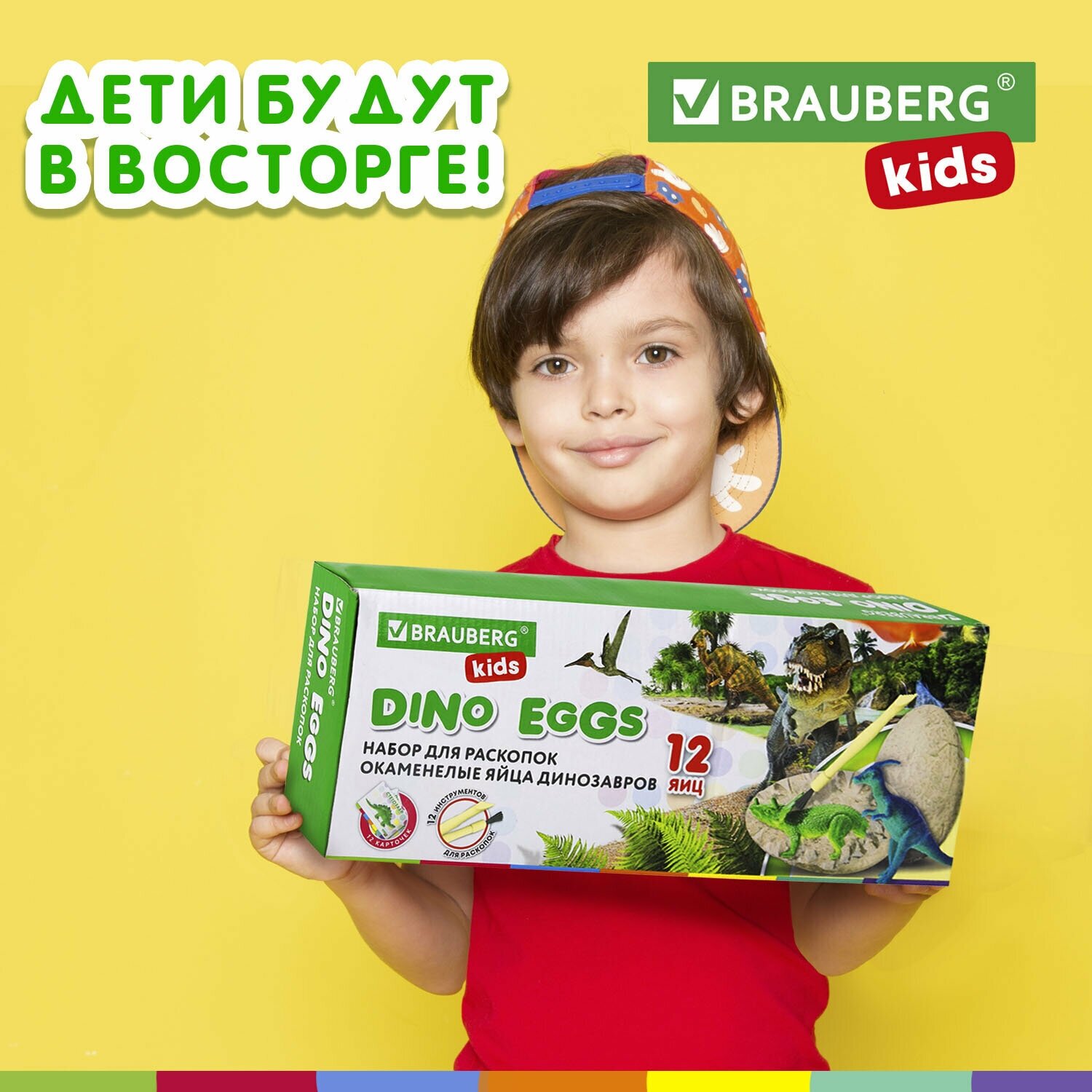 Набор для раскопок Brauberg развивающий, 12 видов динозавров, карточки, инструменты, Kids