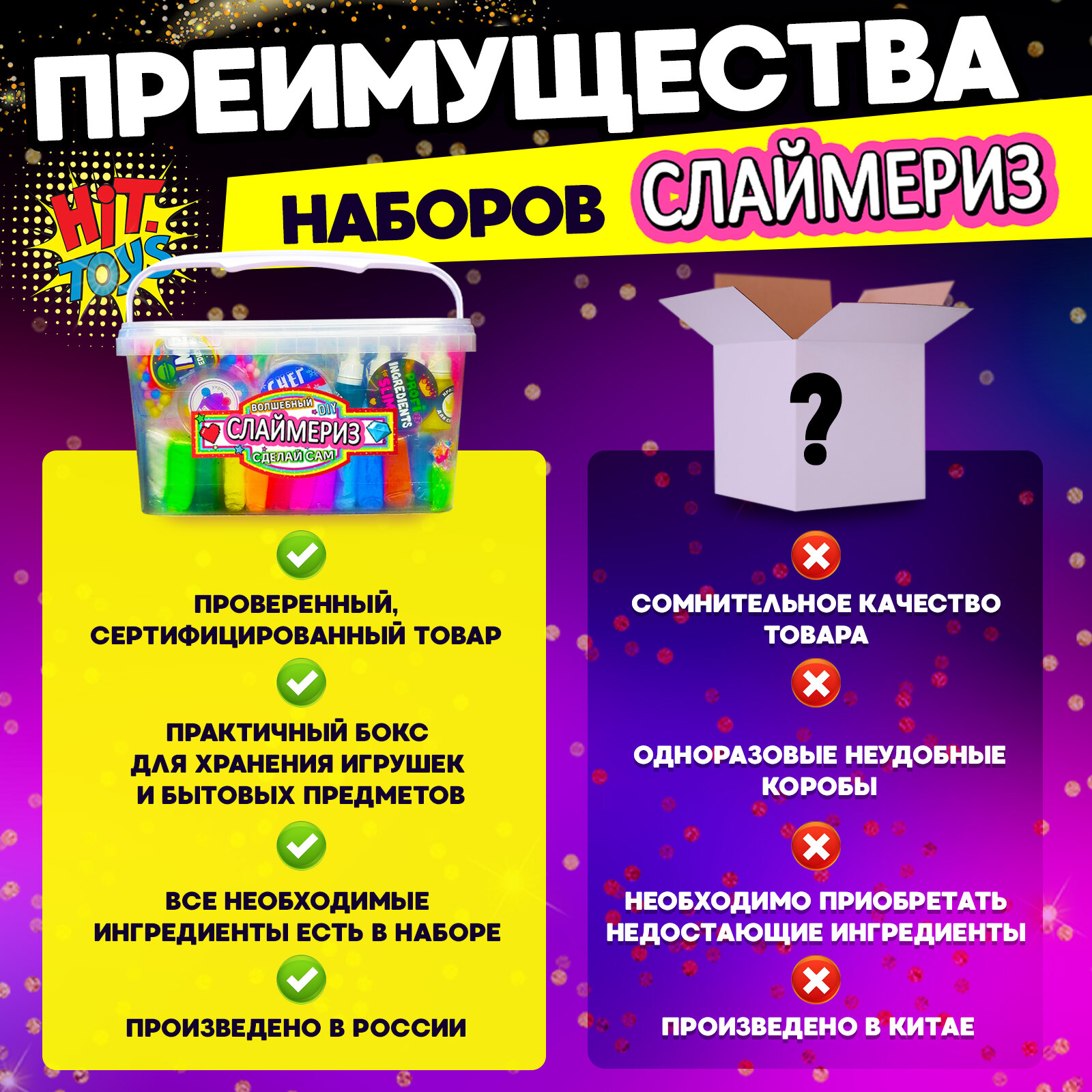 Ниже Вы можете прочитать отзывы на Набор "Сделай сам слайм" мега гигант XXXL, ознакомится с подробными характеристиками, посмотреть интересные обзоры и фотографии на Набор "Сделай сам слайм" мега гигант XXXL.