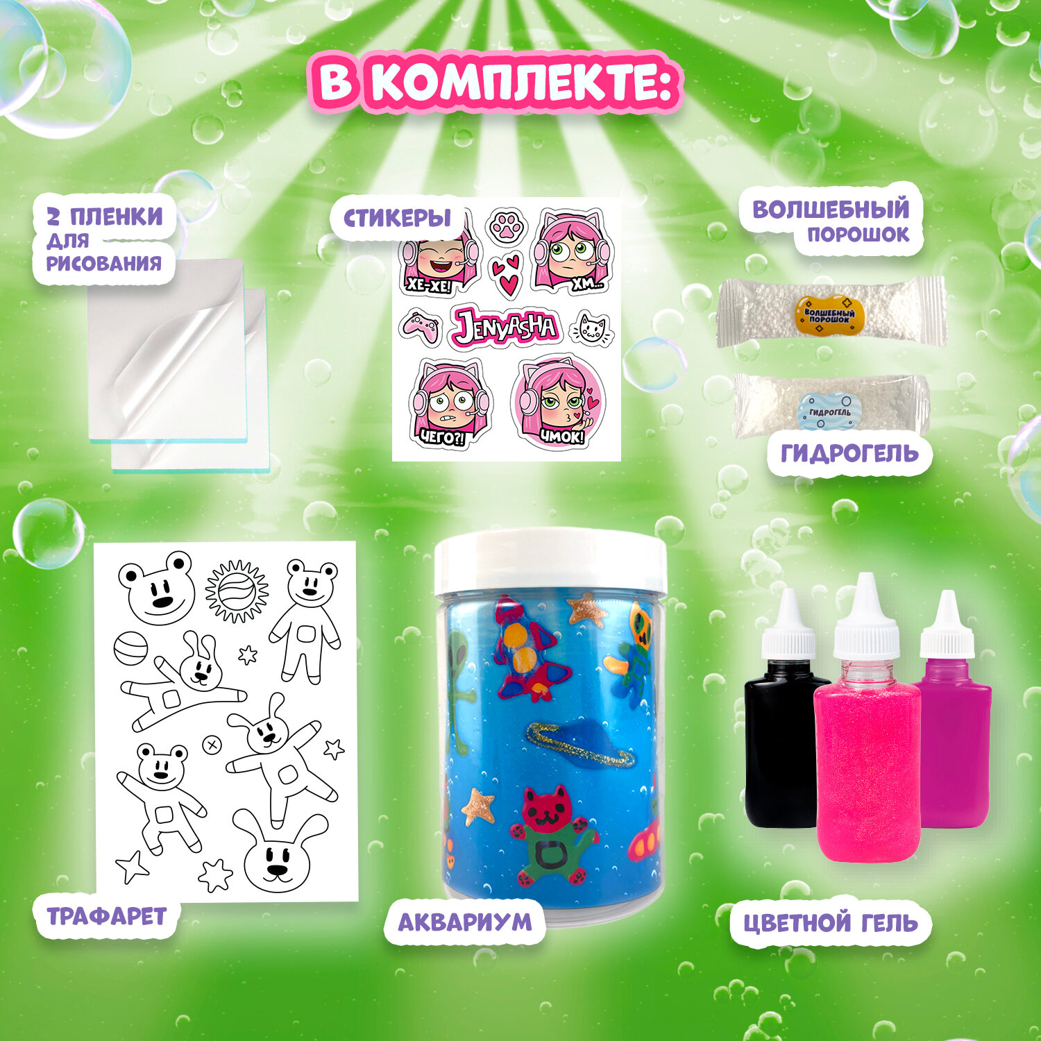 | Комплектация | Аквариум, слайм-краски, гидрогель, волшебный порошок, трафарет, стикеры, автограф блогера |