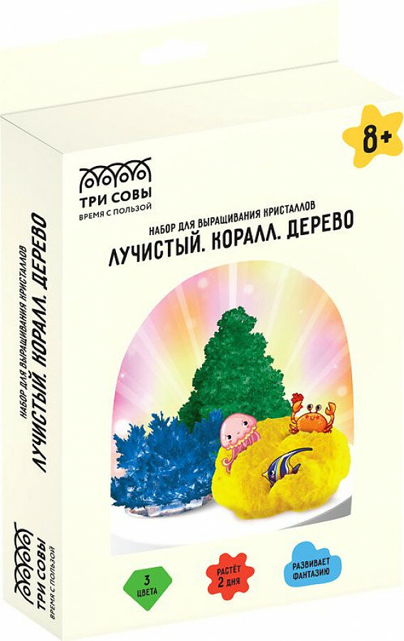 Купить Набор для выращивания кристаллов 3в1 ТРИ совы "Лучистый. Коралл. Дерево", синий, желтый, зеленый