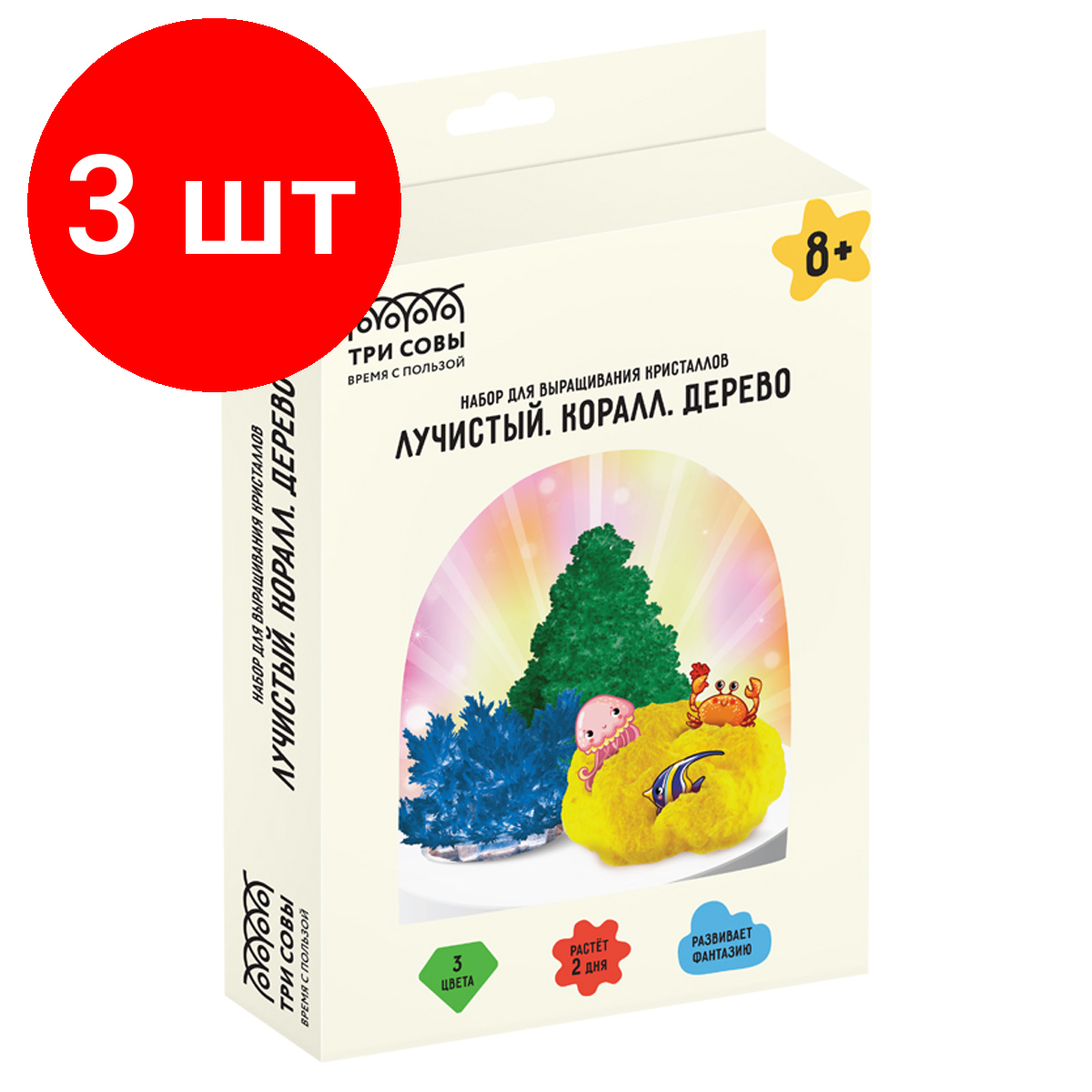 Купить Комплект 3 шт, Набор для выращивания кристаллов 3в1 ТРИ совы "Лучистый. Коралл. Дерево", синий, желтый, зеленый
