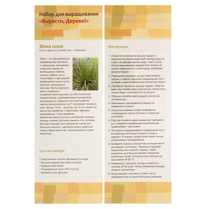 Набор д/выращивания растений "Вырасти, Дерево!", "Юкка сизая" интересное: