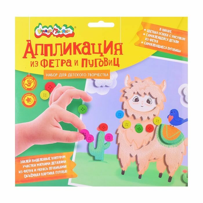 Купить Аппликация Каляка-Маляка "Лама", из фетра и пуговиц, 20х20 см (афпкм-мз)