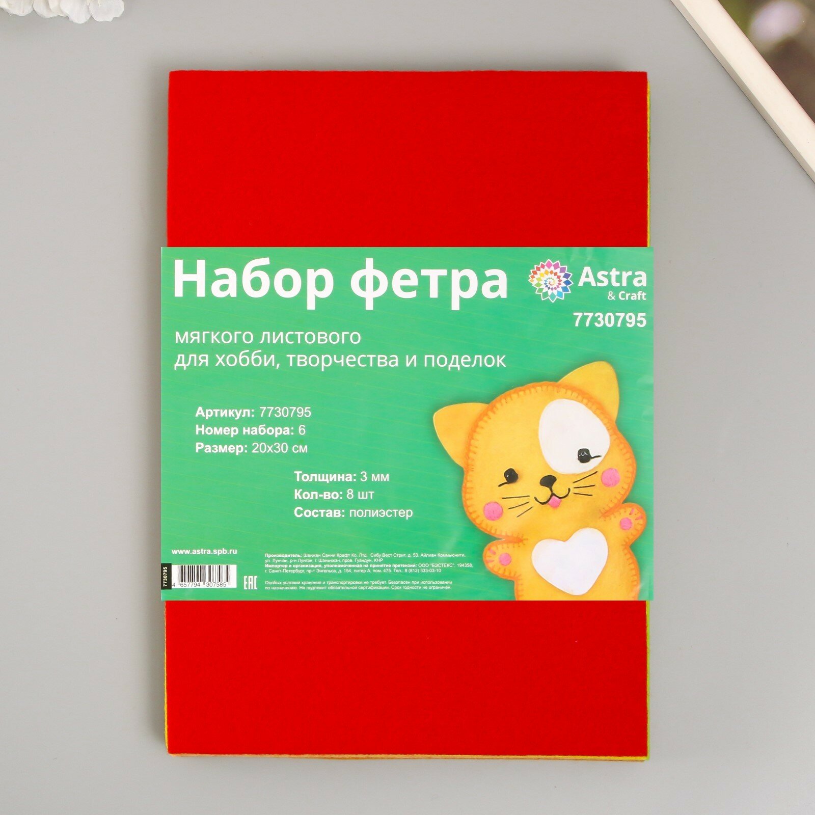 Купить Набор фетра мягкого листового ассорти, 3 мм, 20х30 см, 8 шт, Astra&Craft (6)