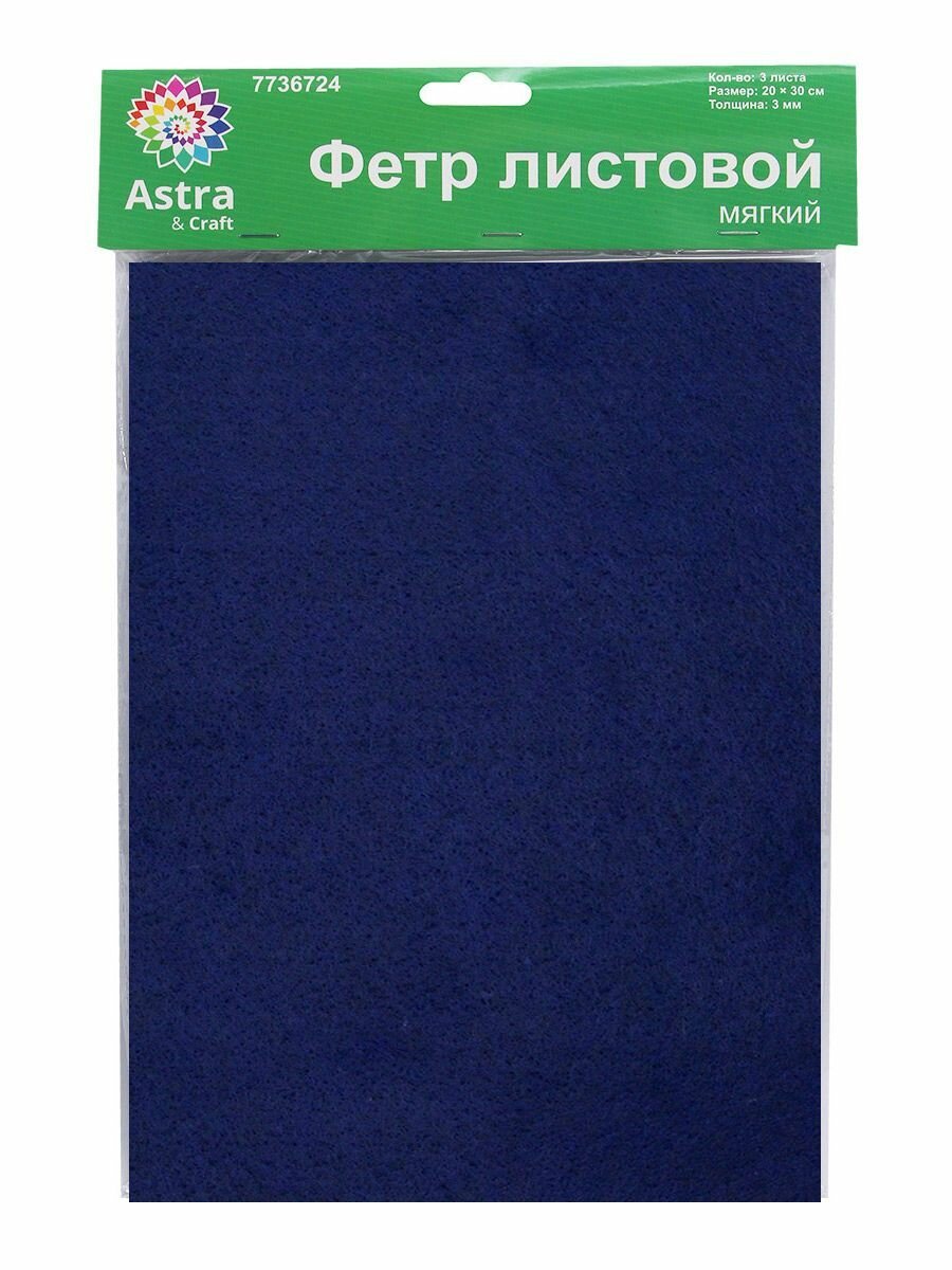 Купить Фетр листовой мягкий 3 мм, Astra&Craft, 20х30 см, 3 шт (AF869 сапфирово-синий)