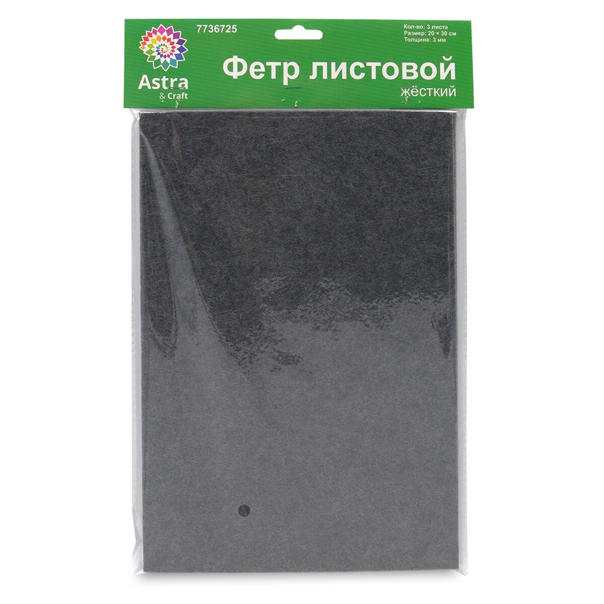 Купить Фетр жесткий листовой Astra&Craft, 3 мм, 20х30 см, 3 шт (AF896/YF699 темно-серый)