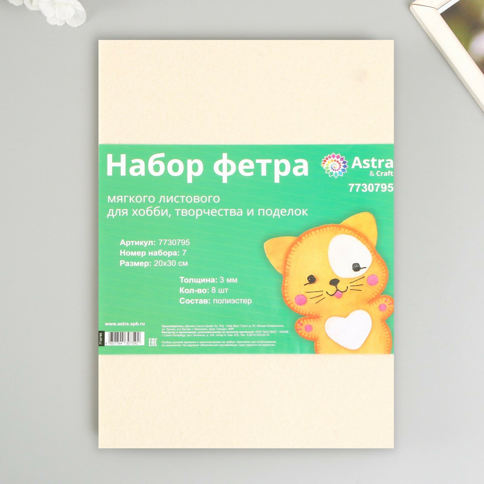 Набор фетра мягкого листового ассорти, 3 мм, 20х30 см, 8 шт, Astra&Craft (6)