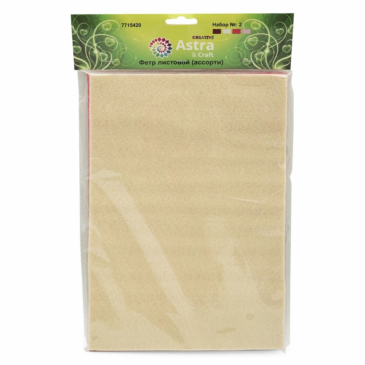 СохранитьНабор фетра мягкого листового ассорти Astra&Craft, 1,4 мм, 20х30 см, 4 ш (2 розовый, бежевый, красный, бордо) интересное: