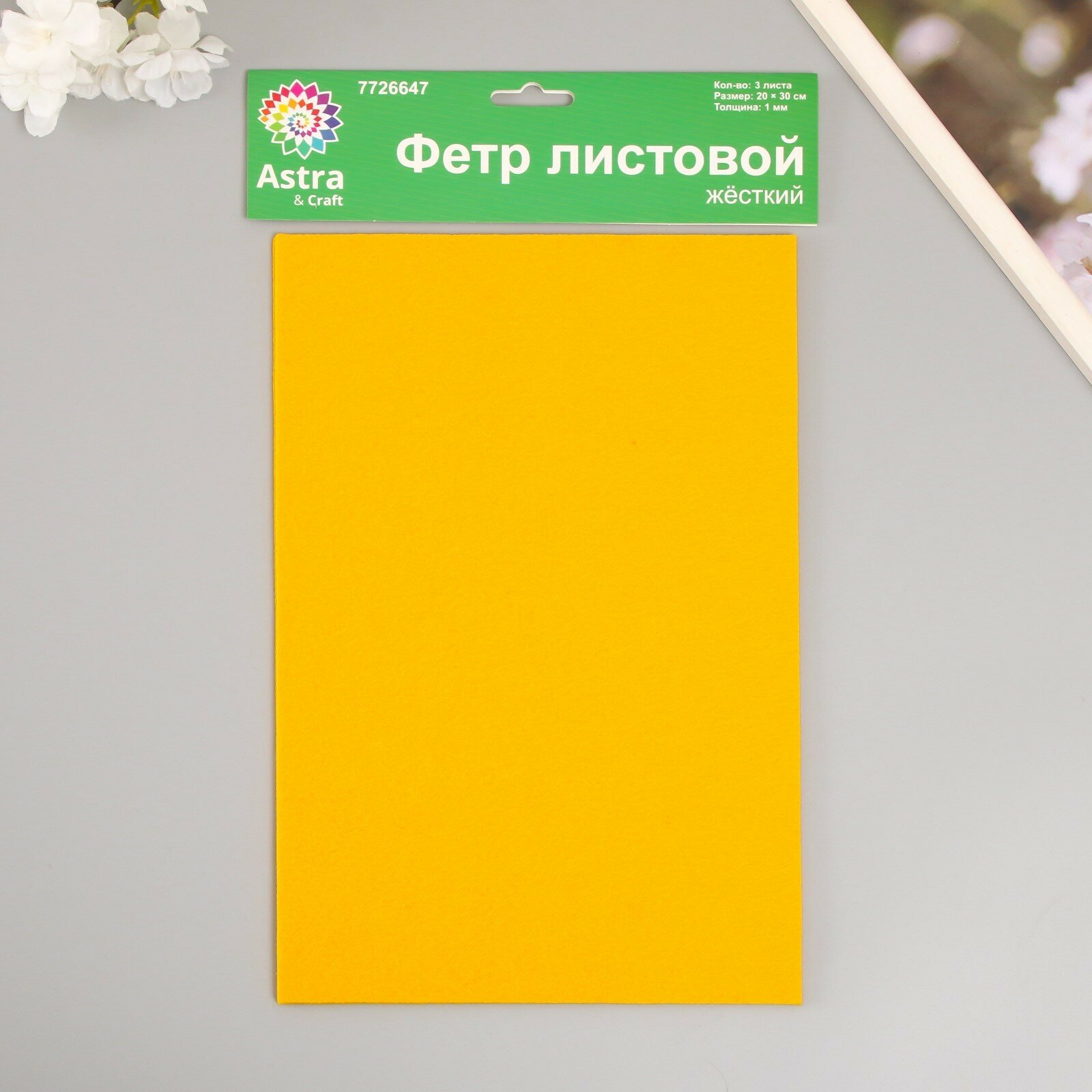 Набор жесткого фетра "Астра" (3 шт) жёлтый, 1 мм, 160 гр, 20х30 см