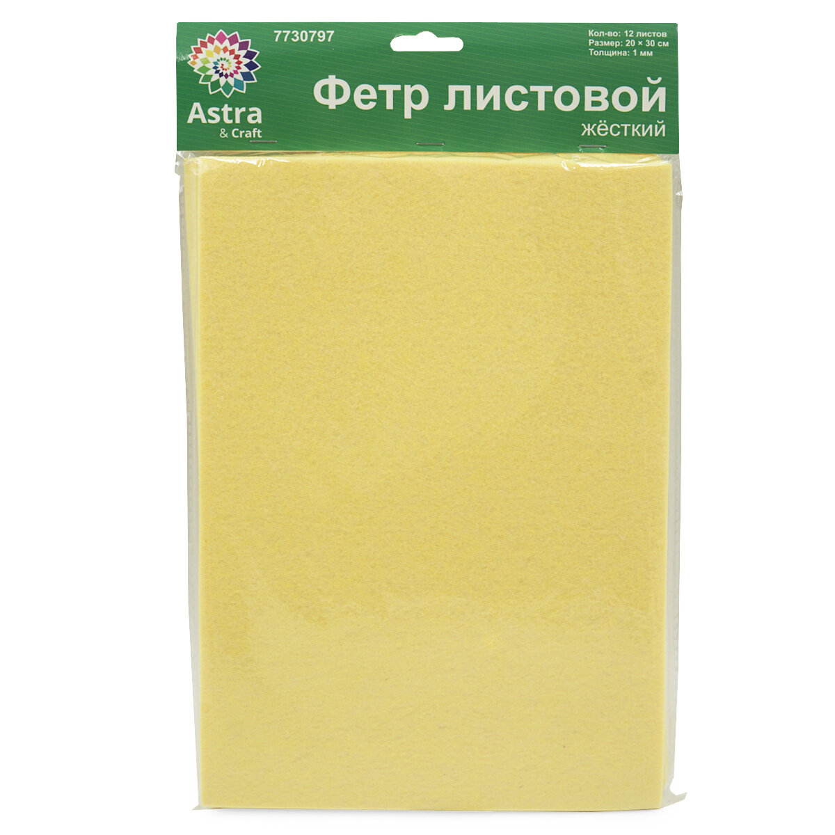 Купить Фетр жесткий листовой Astra&Craft, 1 мм, 20х30 см, 12 шт (AF819 светло-желтый)