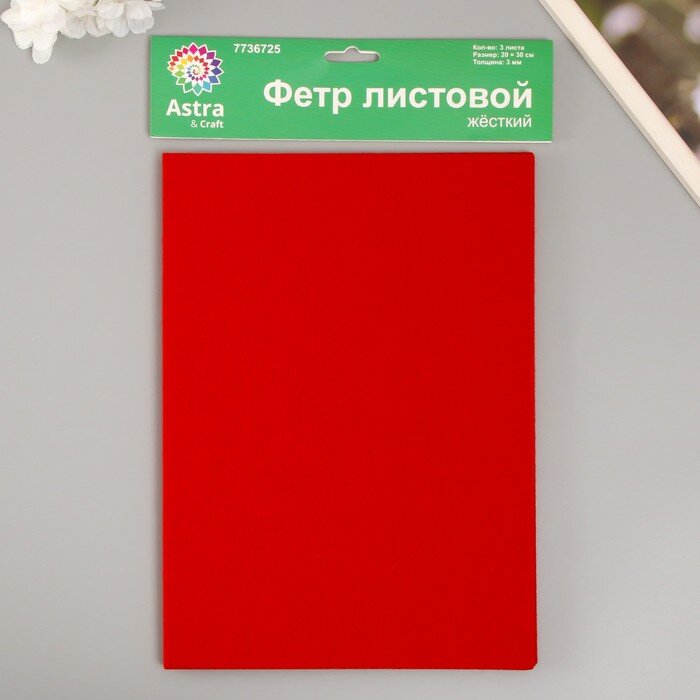 СохранитьНабор жесткого фетра "Астра" (3 шт) красный, 3 мм, 20х30 см 10368863 интересное: