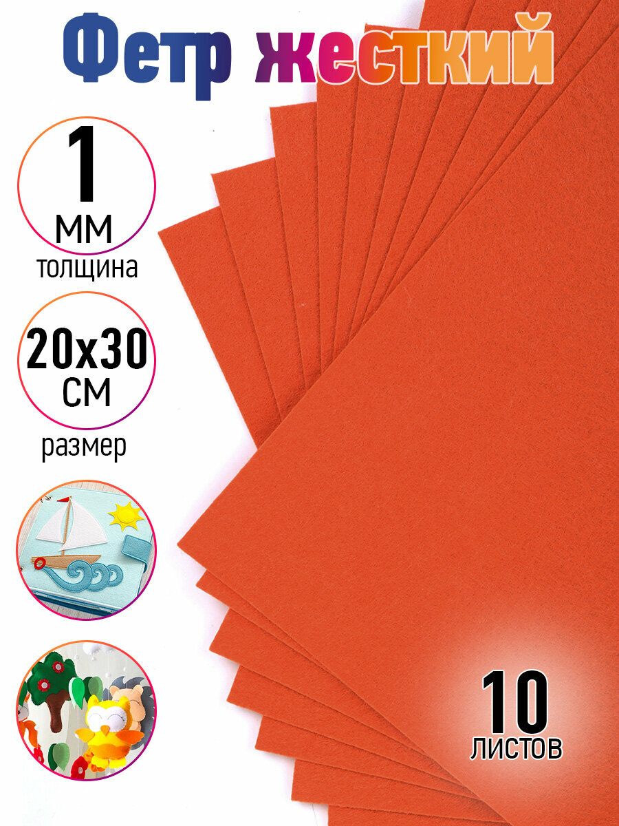 Фетр жесткий IDEAL листовой, 1 мм, 20х30 см, 10 листов, цвет 640, апельсин (TBY.FLT-H1.640)