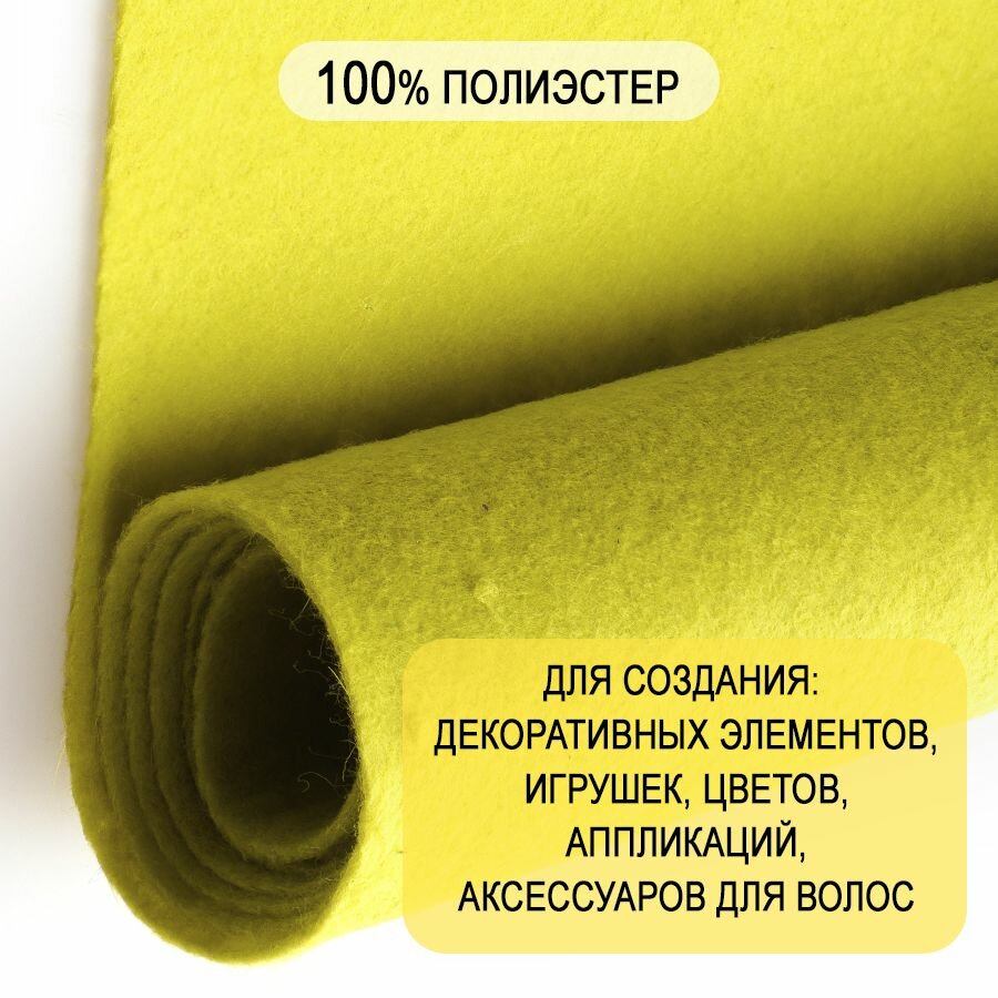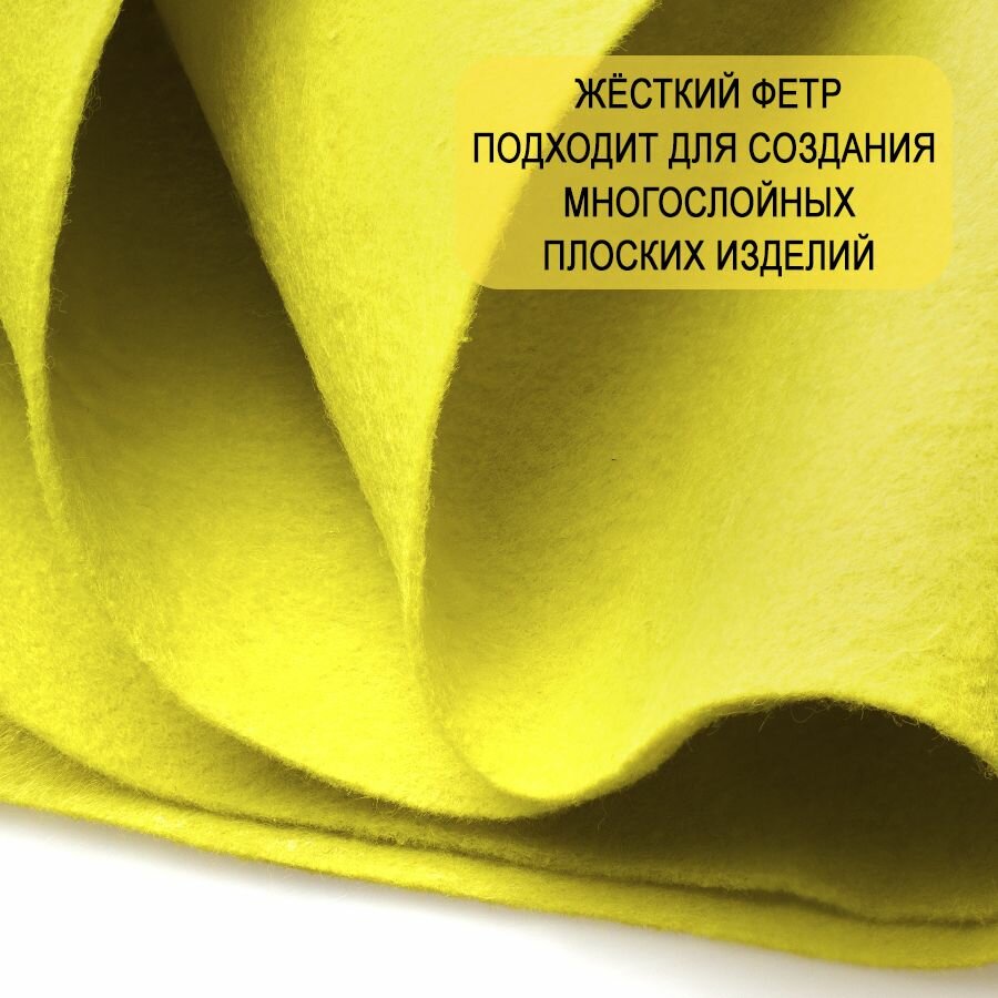 Фетр однотонный твердый 1 мм в рулоне 100 х 100 см / Фетр-войлок жесткий для творчества и рукоделия желтый С18