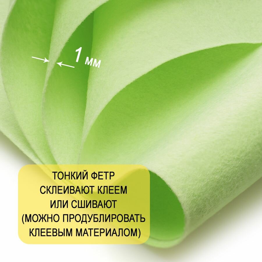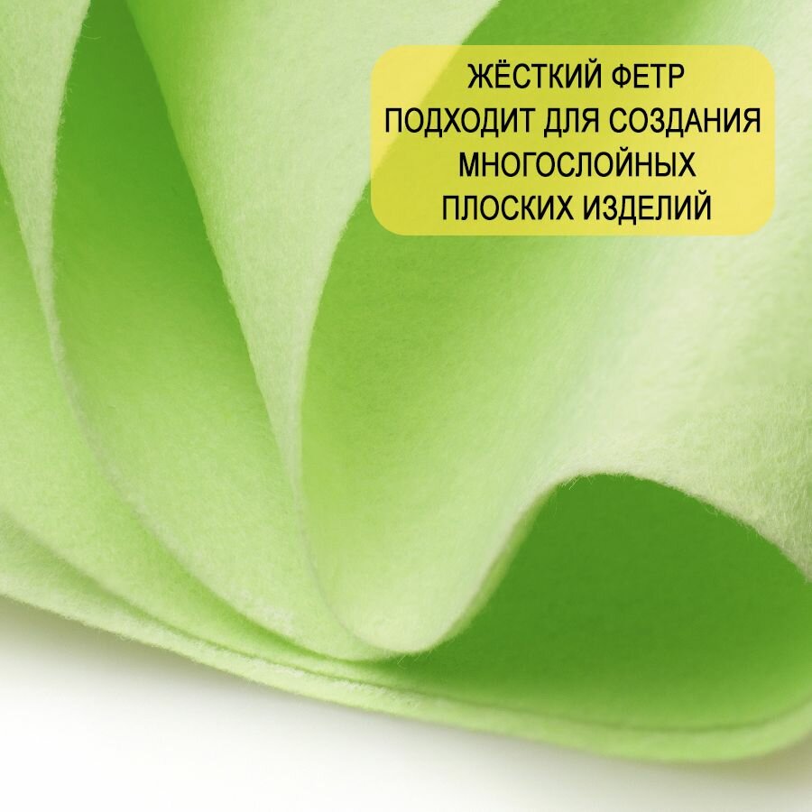 СохранитьФетр однотонный твердый 1 мм в рулоне 100 х 100 см, светло-салатовый С59, плотность 160г/м2 интересное: