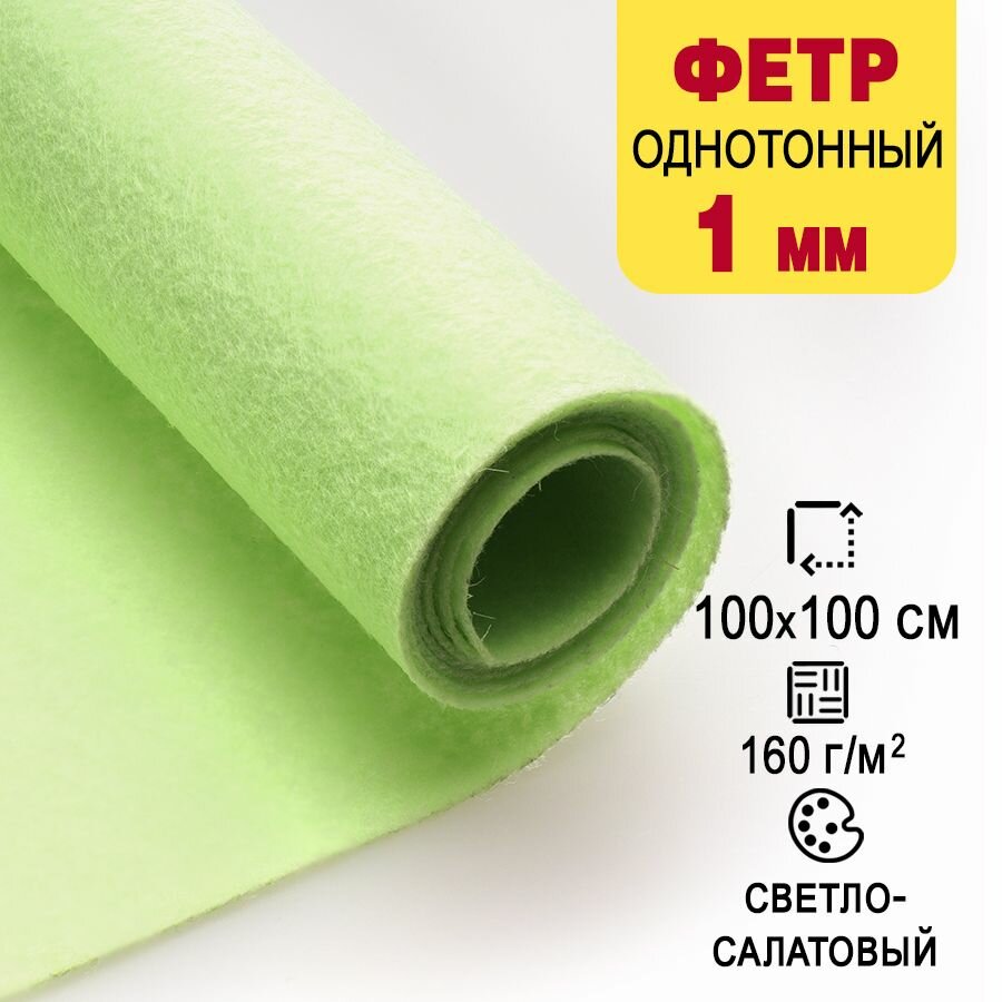 Купить Фетр однотонный твердый 1 мм в рулоне 100 х 100 см, светло-салатовый С59, плотность 160г/м2
