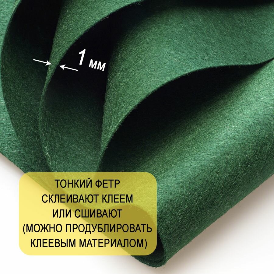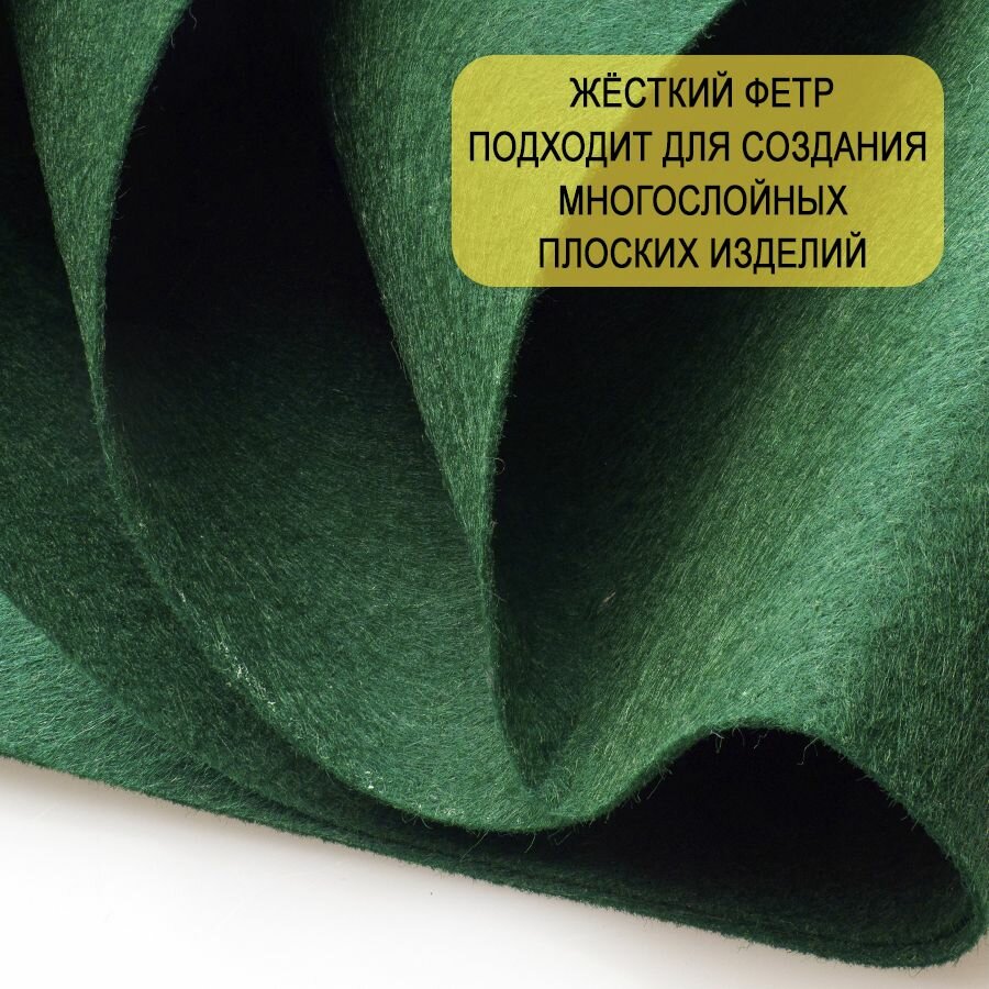 СохранитьФетр однотонный твердый 1 мм в рулоне 100 х 100 см, темно-зеленый С13, плотность 160г/м2 интересное: