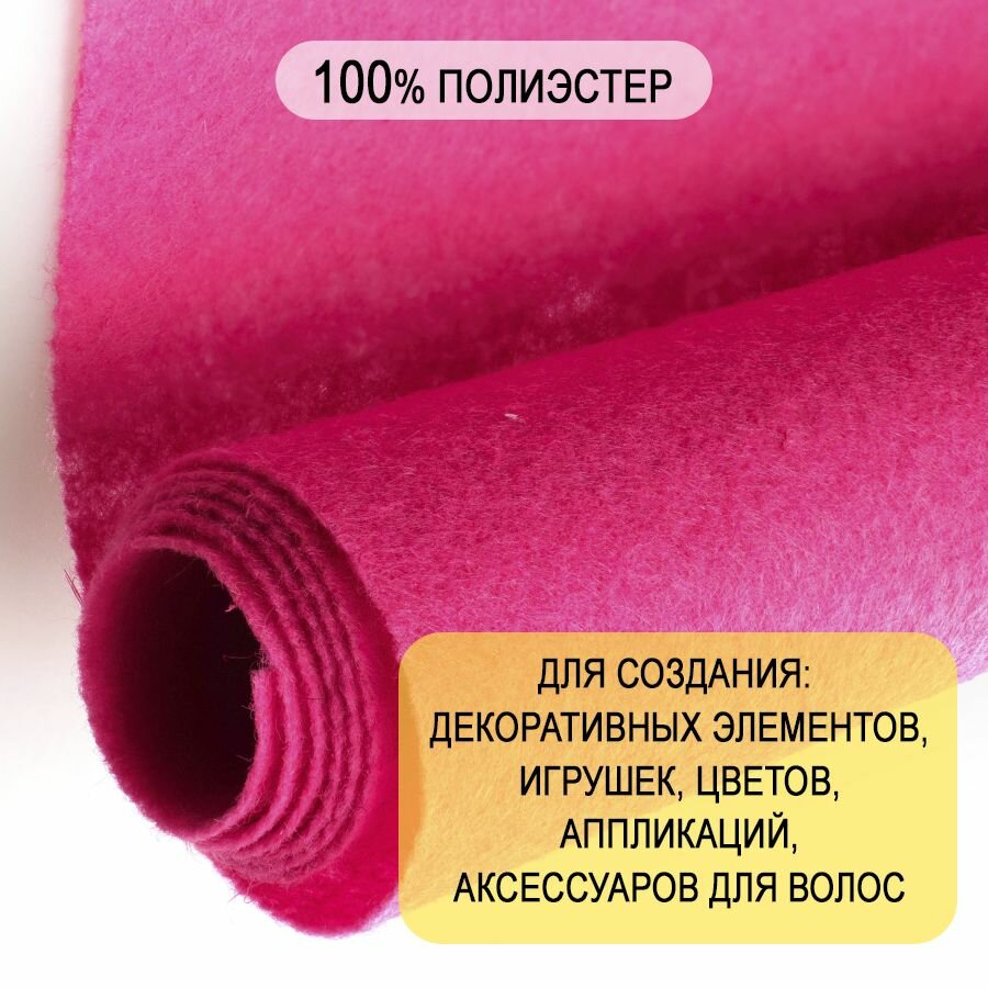 Купить Фетр однотонный твердый 1 мм в рулоне 100 х 100 см, ярко-розовый С21, плотность 160г/м2