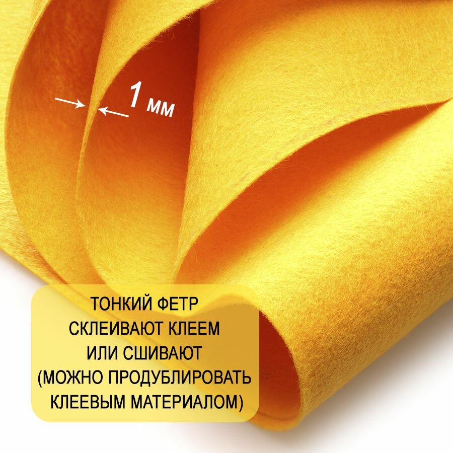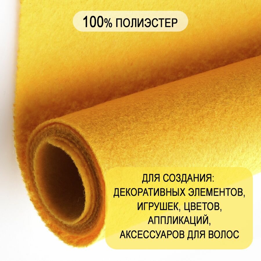Купить Фетр однотонный твердый 1 мм в рулоне 100 х 100 см / Фетр-войлок жесткий для творчества и рукоделия желтый С18
