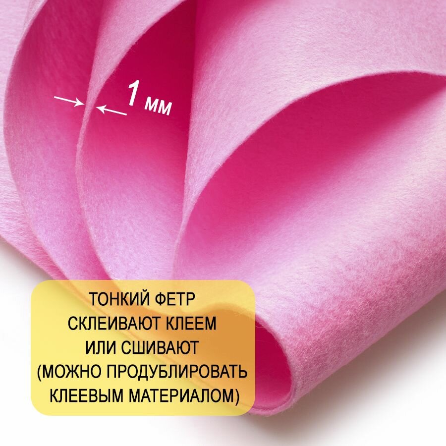 СохранитьФетр однотонный твердый 1 мм в рулоне 100 х 100 см, розовый С22, плотность 160г/м2 интересное: