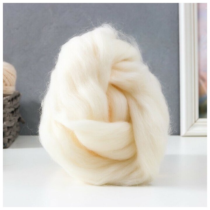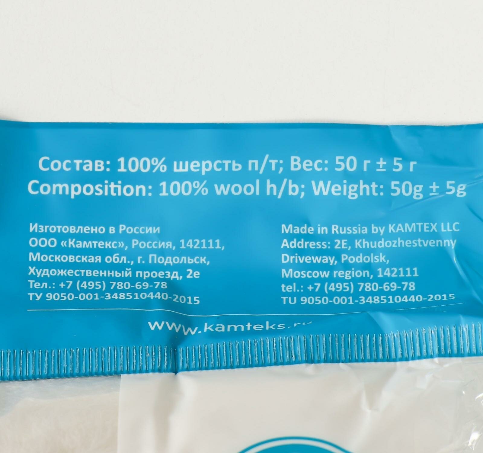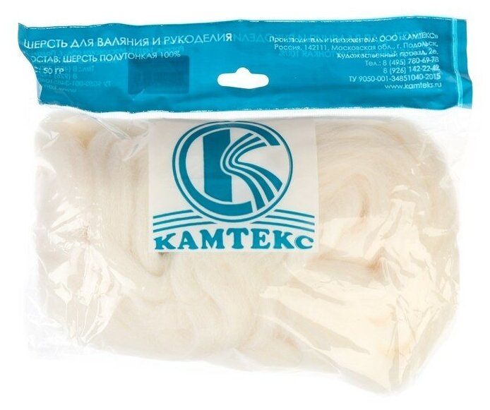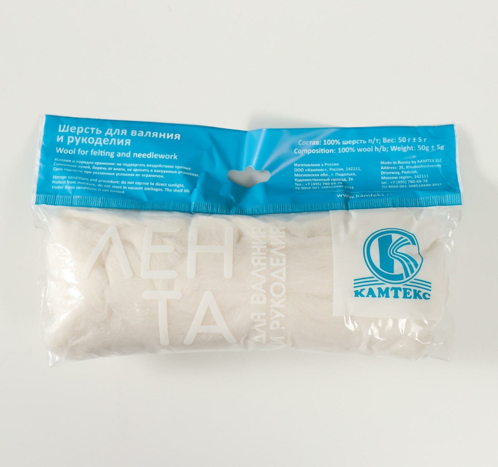 Шерсть для валяния полутонкая Камтекс лента гребенная, белый (205), 100%шерсть, 50г, 1шт интересное: