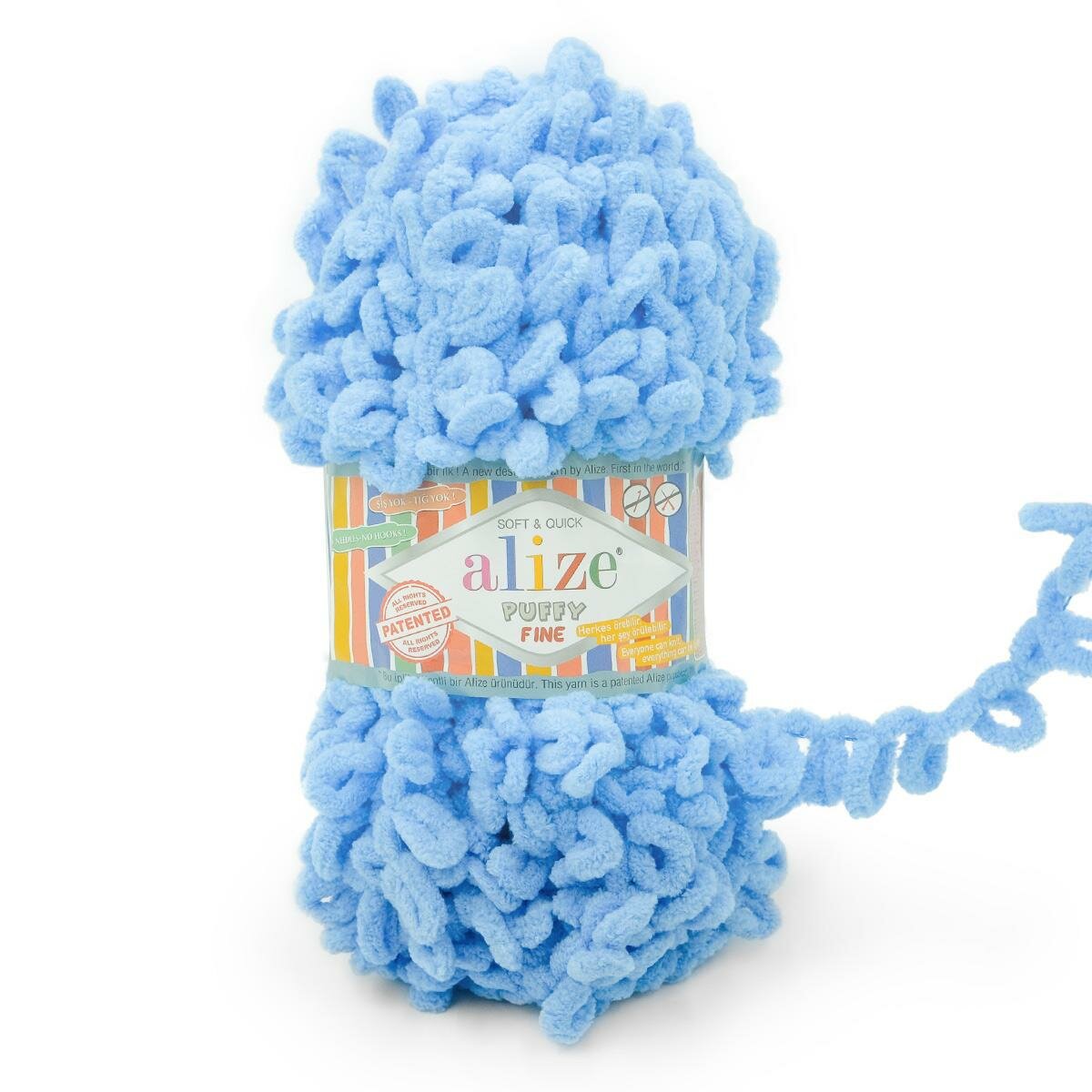 Пряжа для вязания ALIZE Puffy Fine: 112 (голубой,) 3 шт 14.5 м 100 г 100% микрополиэстер. Пряжа Ализе Пуффи Файн с маленькими петлями
