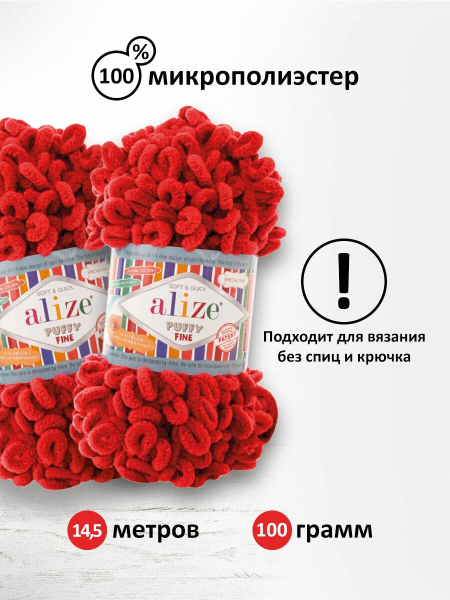Пряжа Alize Puffy Fine (56 красный), 5 шт. по 100 г, Alize